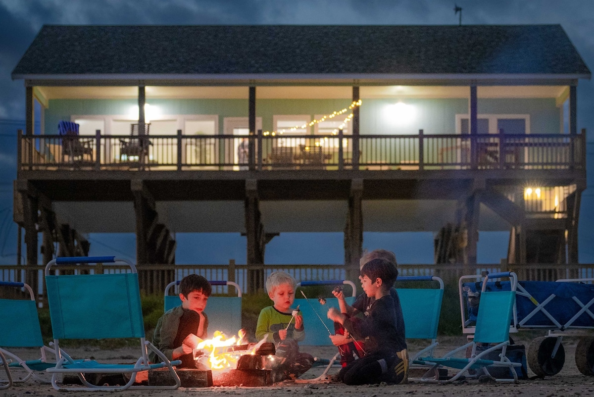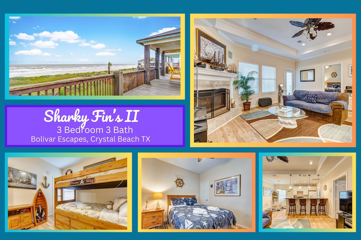 Beautiful recently updated beachfront home on the peaceful end of Bolivar. Completely unobstructed beach views from our wrap around brand new deck as of 2026. This is our family owned property so it’s got everything we love for a perfect beach vacation. Kitchen is very well stocked for the chef’s in the family. Big screen TVs in all rooms. New mattresses, new furniture and new appliances for the perfect beach getaway with family or friends. We’ve got everything you need for little ones too!