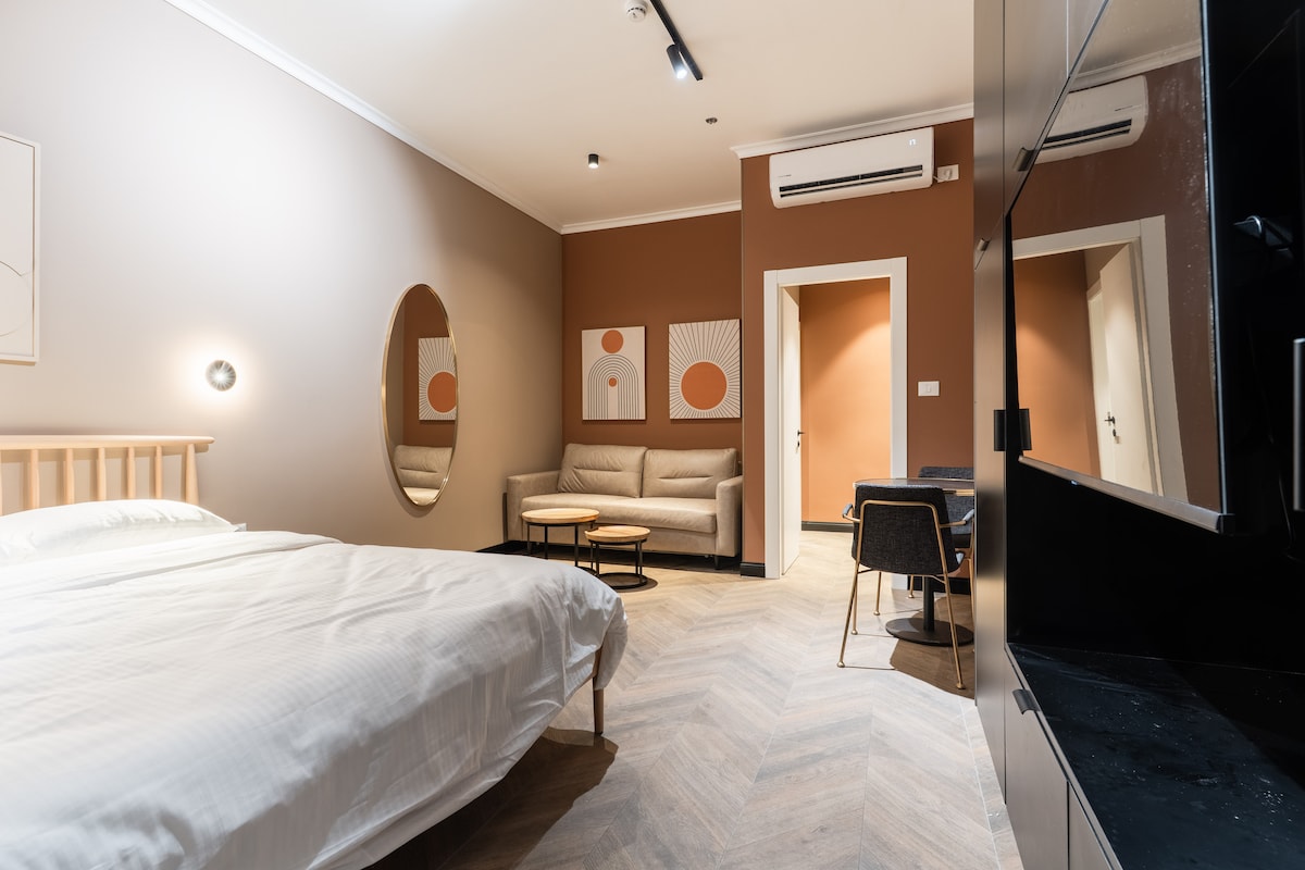 * There is a dimension inside the apartment. * Welcome to your home away from home! Our high-end, fully furnished apartment is located in one of the most prestigious buildings in the area, offering an unparalleled experience for your stay. Step inside and be greeted by an elegant design, modern amenities, and a warm ambiance that invites you to relax and unwind.