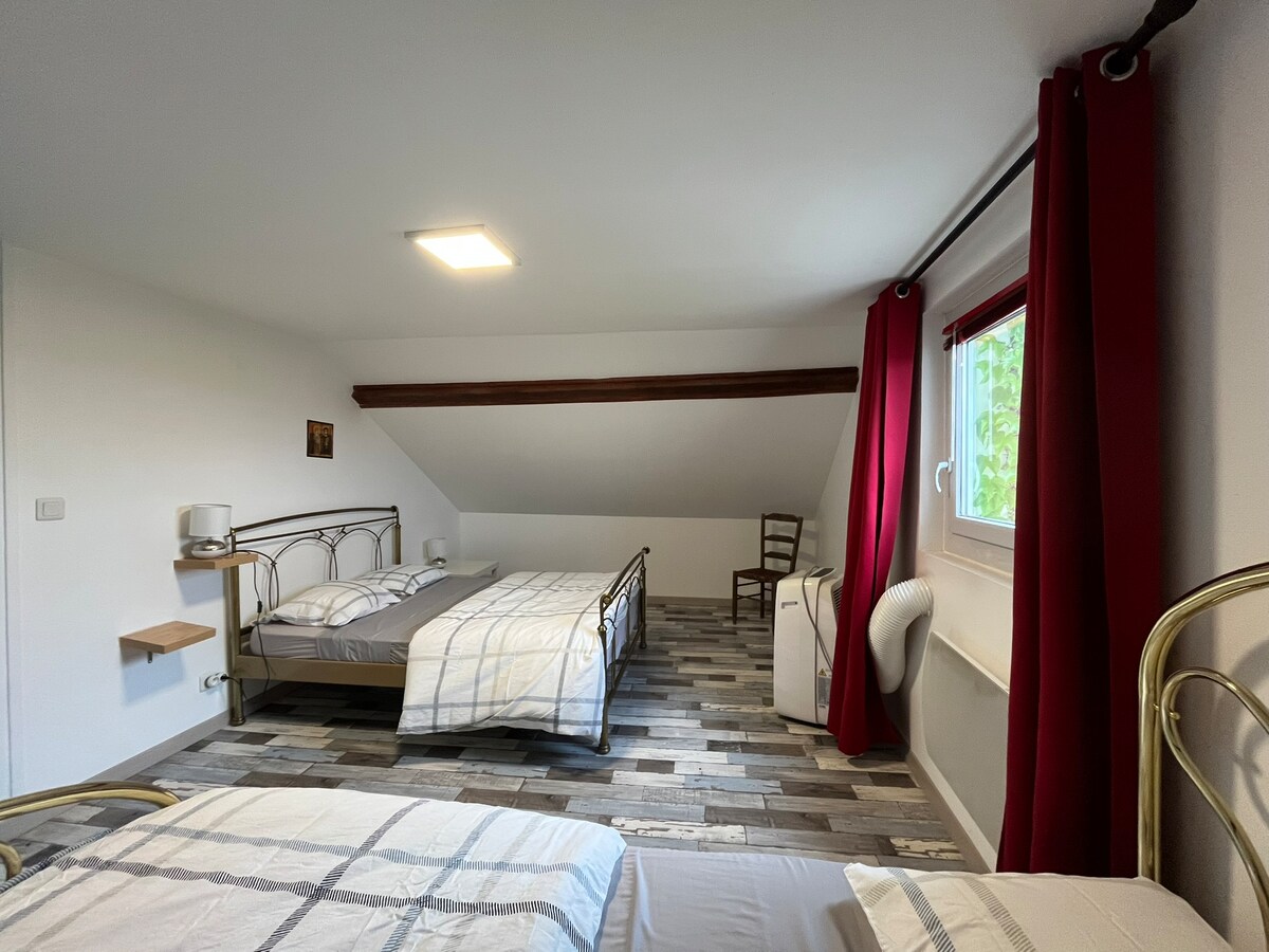 Venga a relajarse y descubrir la hermosa campiña de los Montes del Mâconnais cerca de lugares históricos notables. En la planta baja de nuestra casa en el borde del bosque, 2 casas rurales independientes, una para 4 y otra para 2 personas. Podrá disfrutar de una piscina y un spa (servicio de pago) por favor avísenos el día anterior para la puesta en marcha. La casa no tiene vecinos y está en plena naturaleza, pero a pesar de todo a 10 minutos de todos los servicios.