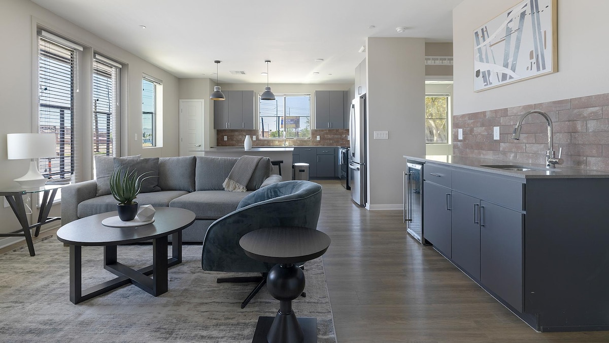 - Central: 10 min to Phoenix Airport - Old Town Scottsdale - Downtown Phoenix - 55' Smart TVs with all the streaming apps. - Full Kitchen A brand-new luxurious and modern experience in this professionally designed and curated two bedroom apartment that will leave you remembering a great stay. This one of a kind home is centrally located between Old Town Scottsdale and Downtown Phoenix and all the great restaurants and bars the city has to offer.