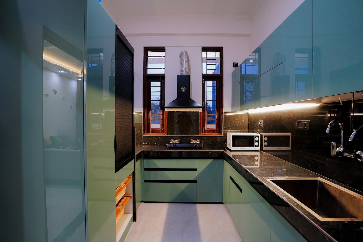 Disfrute de una estadía de lujo en este apartamento 2BHK bellamente diseñado que cuenta con interiores modernos, habitaciones acogedoras, una elegante sala de estar y una cocina modular completamente equipada.La casa ofrece comodidad superior con iluminación inteligente, muebles elegantes y una serena vista desde el balcón.Perfecto para familias o grupos que buscan una estadía relajante y memorable, cerca de todas las comodidades de la ciudad pero lo suficientemente tranquilo para relajarse.