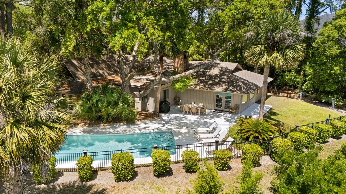 Surrounded by lush vegetation on Hilton Head Island, this cozy residence features a superb blend of sun and shade. From the tiled terrace, steps lead into the turquoise pool. The heart of the village is a brief bike ride away. Discover waterfront restaurants, unique shops, and activities for the whole family. A 5-minute stroll is all it takes to sink your toes into the toasted sand at the beach. Copyright © Luxury Retreats. All rights reserved.