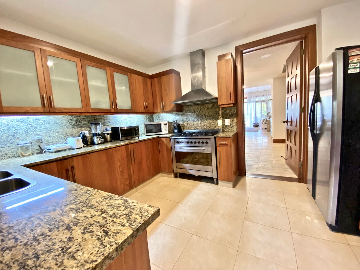 La naturaleza te espera en Cerezas 41, con unas vistas espectaculares al campo de golf. Disfruta de mangos y cerezas cuando estén en temporada. Amplio 3 BR con aire acondicionado en los dormitorios, 4.5 BA, techos altos, comedor y sala de estar, área de TV con ventiladores de techo en todas las áreas de estar, piscina, patio y patio trasero, cocina totalmente equipada y ¡mucho verde! Qué incluye: Servicio de limpieza de 8:30 a 16:00, aparcamiento en las instalaciones. Preparación de desayunos y almuerzos {Excluye alimentos} La preparación de la cena está disponible por un cargo adicional.