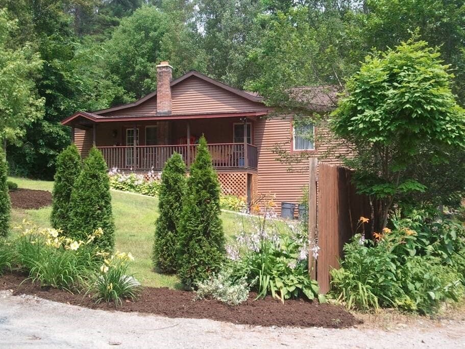 Cabaña privada con estilo. Ampliada y recién renovada. AC WiFi. Chimenea. Sistema de calefacción. Cocina completa y baño con ducha. Roku. En la piscina subterránea compartida por otras 5 cabañas. Todos los muebles nuevos y la nueva cama tamaño Queen. Mill Creek es vecina de la propiedad para la pesca de truchas. A minutos de un gran esquí en el monte Gore. A minutos de Lake George y a minutos de otros lagos, y de rafting y senderismo en Whitewater. Los huéspedes deben traer sus propios jabones y toallas. La tarifa por mascota debe traer fundas para mascotas para los sofás y la cama.