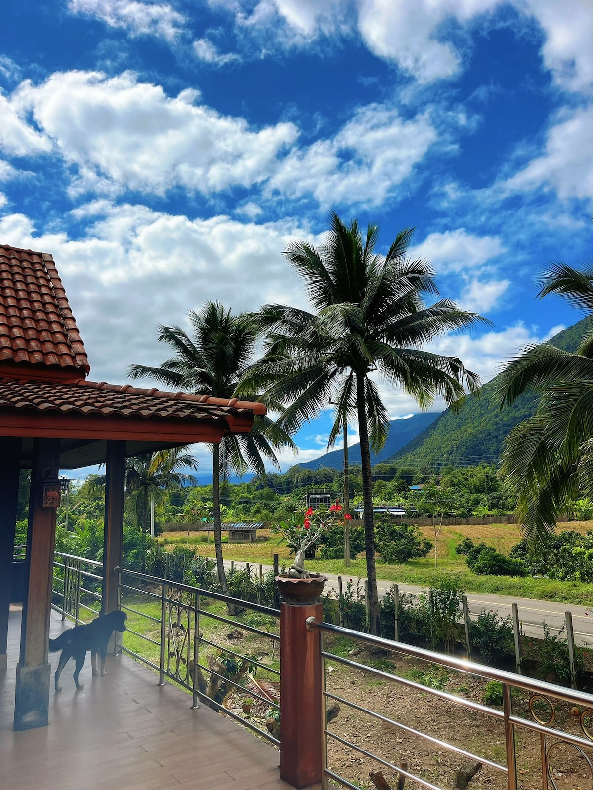 Casa privada aislada y jardín. Dramática vista a la montaña. Situado en el borde de la selva y en la base de la montaña Chiang Dao. Sombreado por árboles indígenas Don Yang de más de 40 metros de altura. Aguacate maduro, mango, guayaba, lima y plátano. El arroyo de montaña claro que atraviesa el jardín en temporada húmeda hasta noviembre, se puede escuchar gotear desde el porche. A 10 minutos a pie de muy buenos cafés, restaurantes tailandeses/occidentales, templos, cuevas, sendero natural y alquiler de scooters/bicicletas.