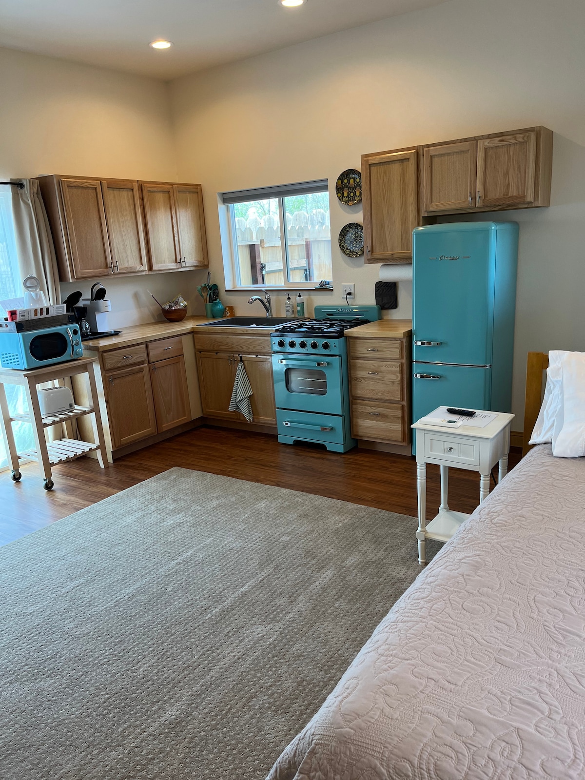 Esta morada de 366 pies cuadrados es cualquier cosa menos normal. Pequeño y con buen gusto diseñado para satisfacer todas tus necesidades de viaje. Cómodo y acogedor con lavavajillas/nevera/cocina de gas/cama queen/bañera/ducha/tv satélite/wifi/patio/a 9 manzanas del centro de la ciudad. Nota: Hay una lavadora y secadora disponibles para su uso solo entre las 11:00 a. m. y las 8:00 p. m. La lavadora/secadora se encuentra en una pared compartida con otros huéspedes, por lo que las horas de uso son estrictas para no molestar a otros huéspedes que puedan estar durmiendo.