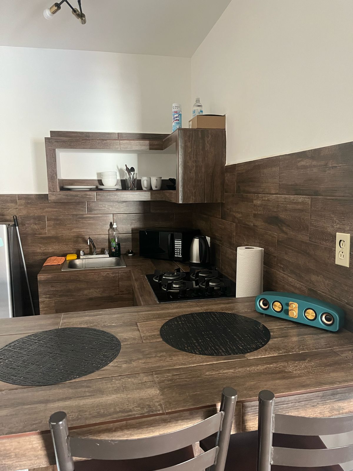 Bienvenidos a nuestro acogedor Departamento a poca distancia de restaurantes y tiendas! Este apartamento es perfecto para parejas o para pasar la noche cómodamente, es privado y cómodo para descansar o trabajar desde un dispositivo movil. Está ubicado en un segundo piso, de fácil acceso.