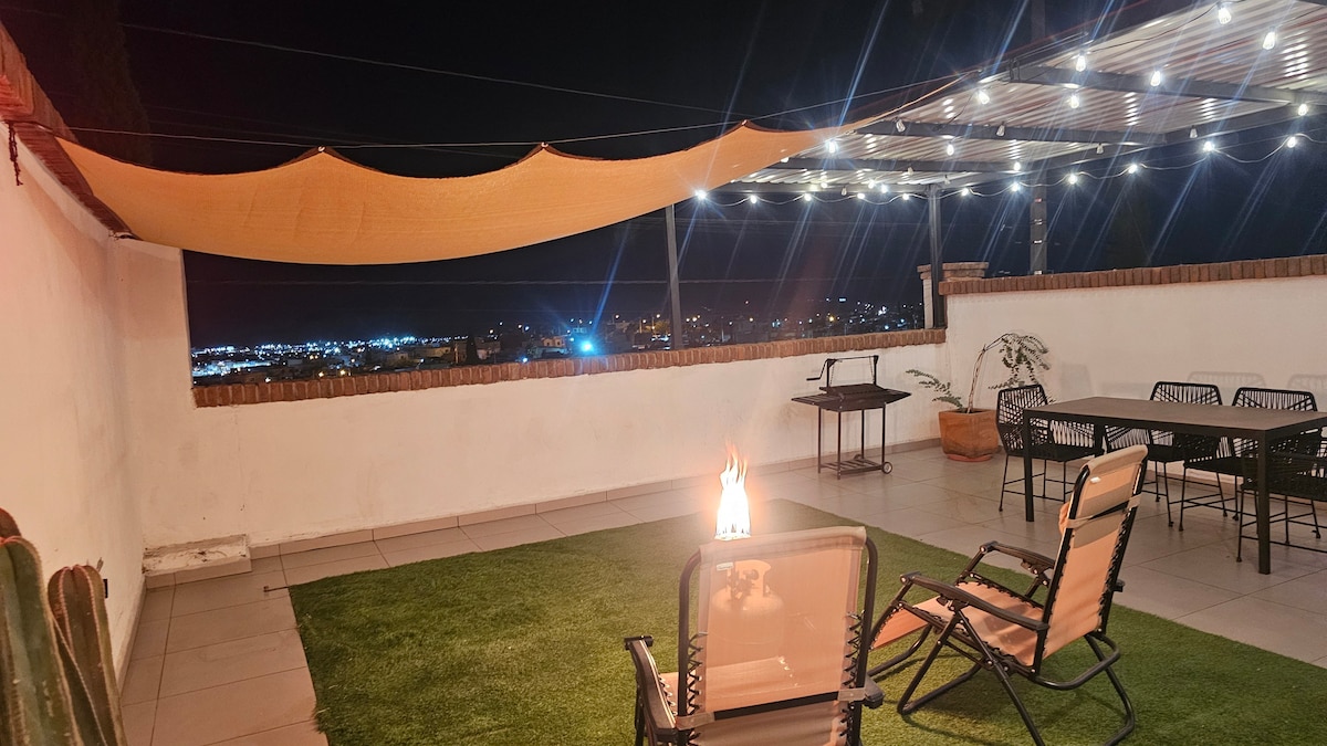 🟡¡Retrocede en el tiempo en este loft 90's de ensueño! Doble altura, diseño noventero que te transportará, cerca del centro histórico de Chihuahua. Amplio patio con alberca / jacuzzi climatizado y burbujeante, asador y fogatero para noches mágicas. Ideal para familias, amigos o parejas (¡sin fiestas!). Pet friendly, ¡tu mascota es bienvenida! Relájate, conéctate, ¡vive la experiencia!