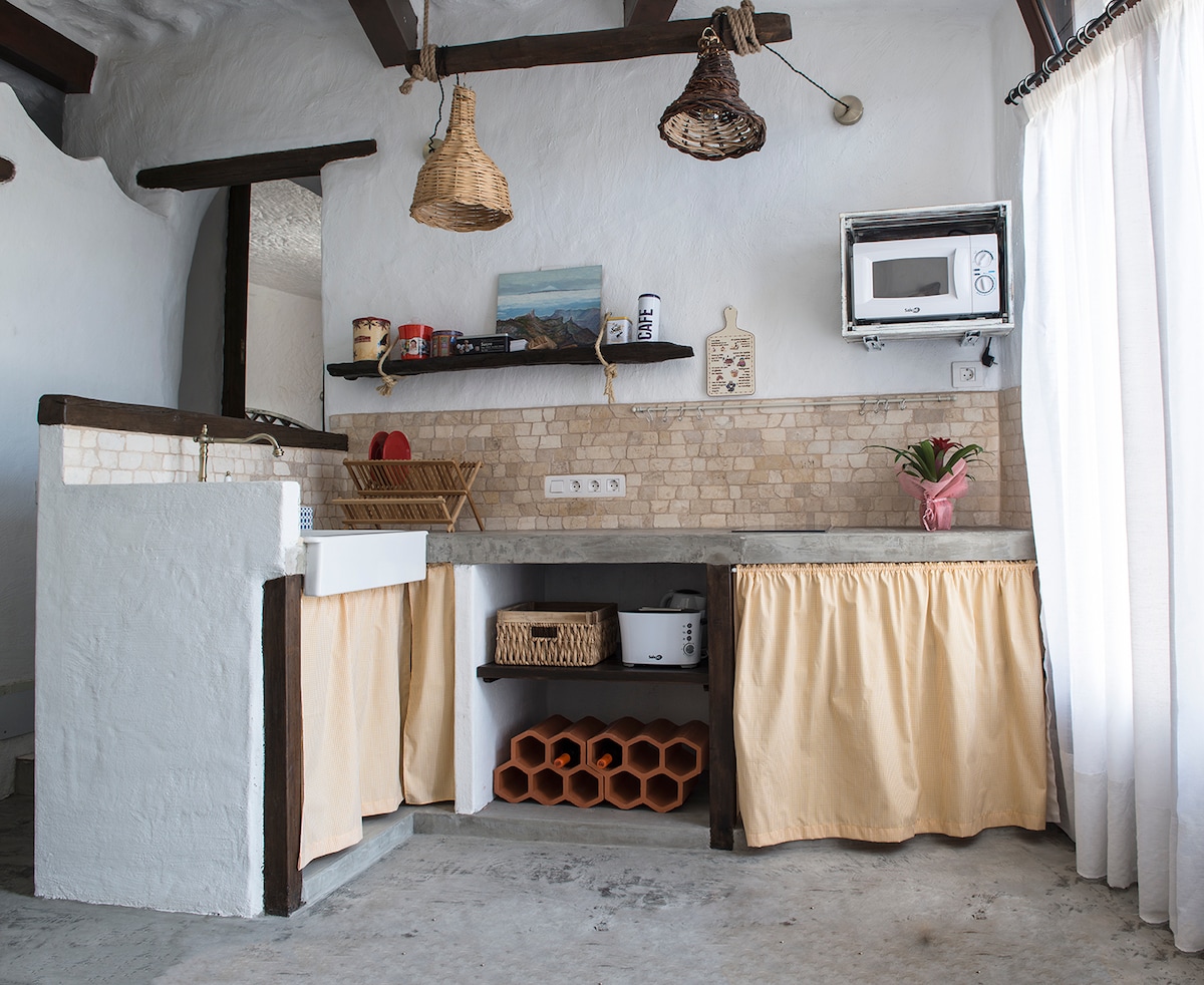 Relájate en este alojamiento especial y tranquilo y disfruta de la unión romántica al atardecer y con una copa de vino. Las espectaculares vistas al valle (Barranco de Anzoe) y al mar hasta el Teide en Tenerife son difíciles de superar. La cueva de unos 45 m2 con anexo tiene más de 100 años y fue renovada con cariño como apartamento de vacaciones en el verano de 2022. El confortable equipamiento no deja NADA que desear (atención, hay wifi, ¡¡NO hay TV!! ;-)