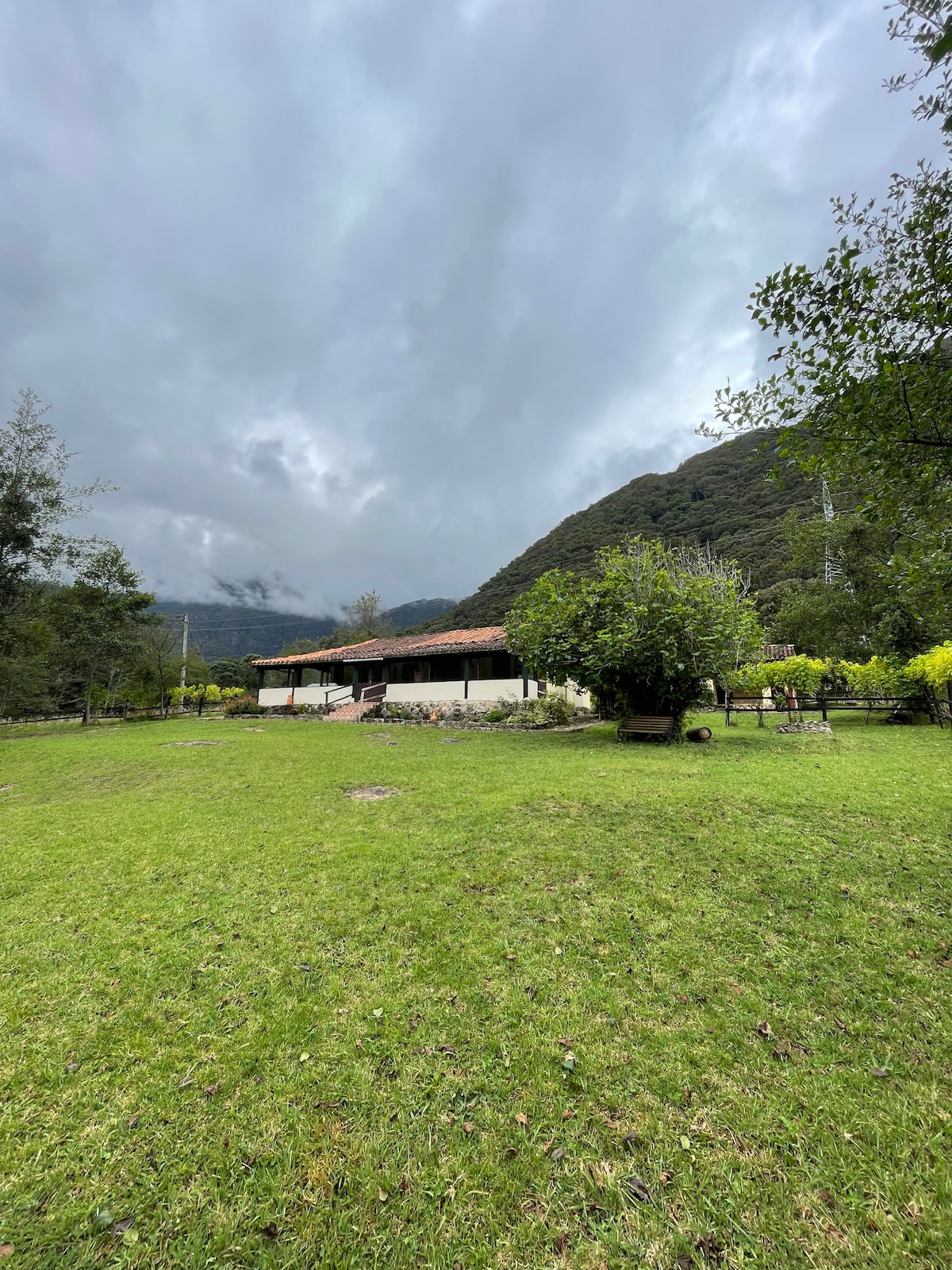 A las afueras de Villa de Leyva, en una finca, vía a arcabuco; amplios jardines, bosque nativo con sendero para caminar. A solo 6 km. del pueblo, via pavimentada, solo 1 km. sin pavimento. Hermosa casa. acompañada de un río de aguas cristalinas, con la posibilidad de disfrutar de sus sanadoras aguas; lugar ideal para la serenidad, el contacto con la naturaleza, para compartir en familia, para trabajo remoto, para escritores o compositores que buscan inspiración y paz. Máximo 1 mascota pequeña.