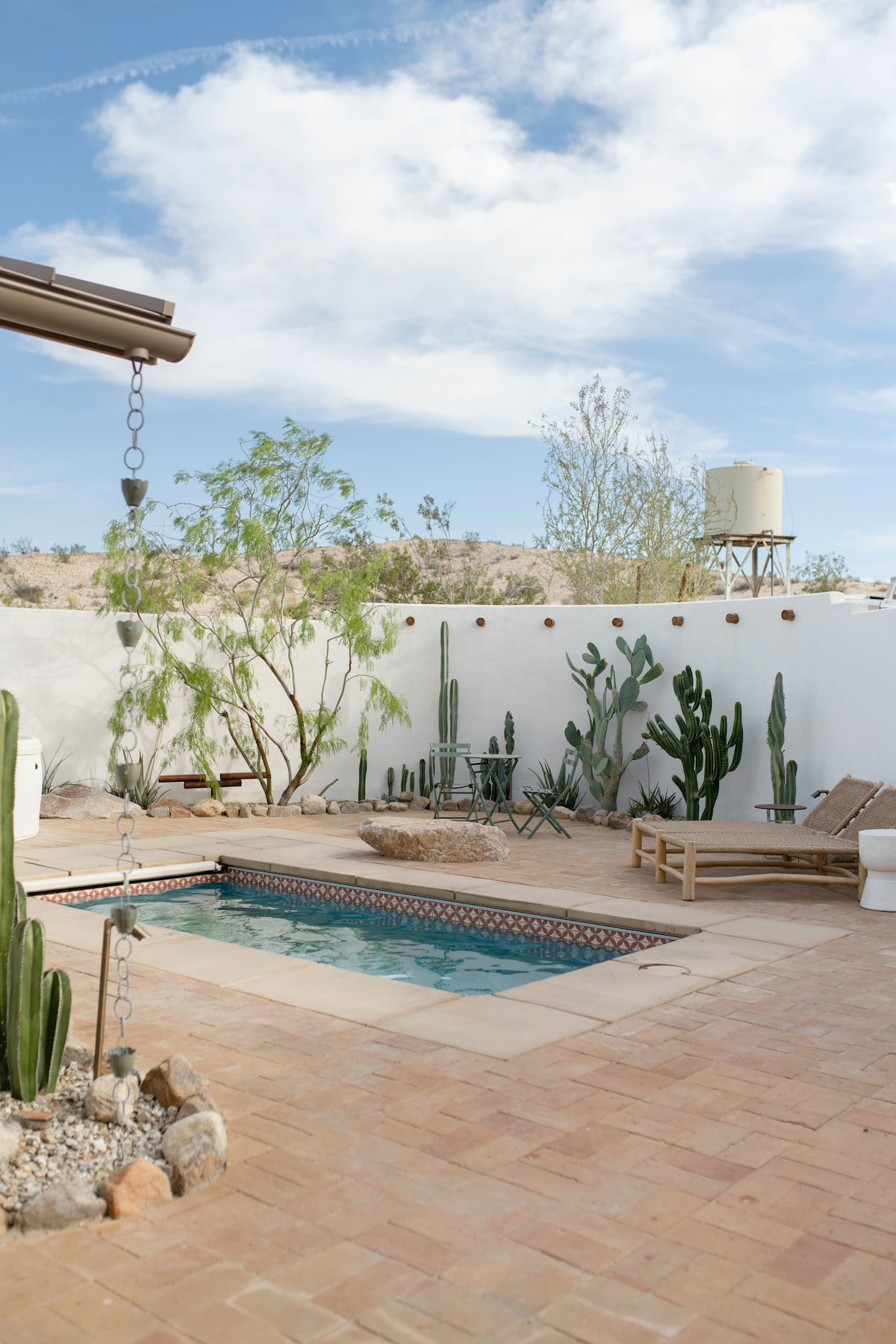Sumérgete en esta lujosa casa de 3 dormitorios y 2 baños recién construida, con amplias ventanas que revelan los impresionantes paisajes, una piscina climatizada y un spa para disfrutar de baños bajo las estrellas, y un espacio dedicado al fitness. Relájate bajo cielos infinitos en 2 acres en tu propio oasis privado, perfecto para observar las estrellas y reunirse en el patio. Despiértate con impresionantes amaneceres, explora las maravillas de otro mundo de Joshua Tree y vuelve para darte un baño rejuvenecedor en tu refugio en el desierto.