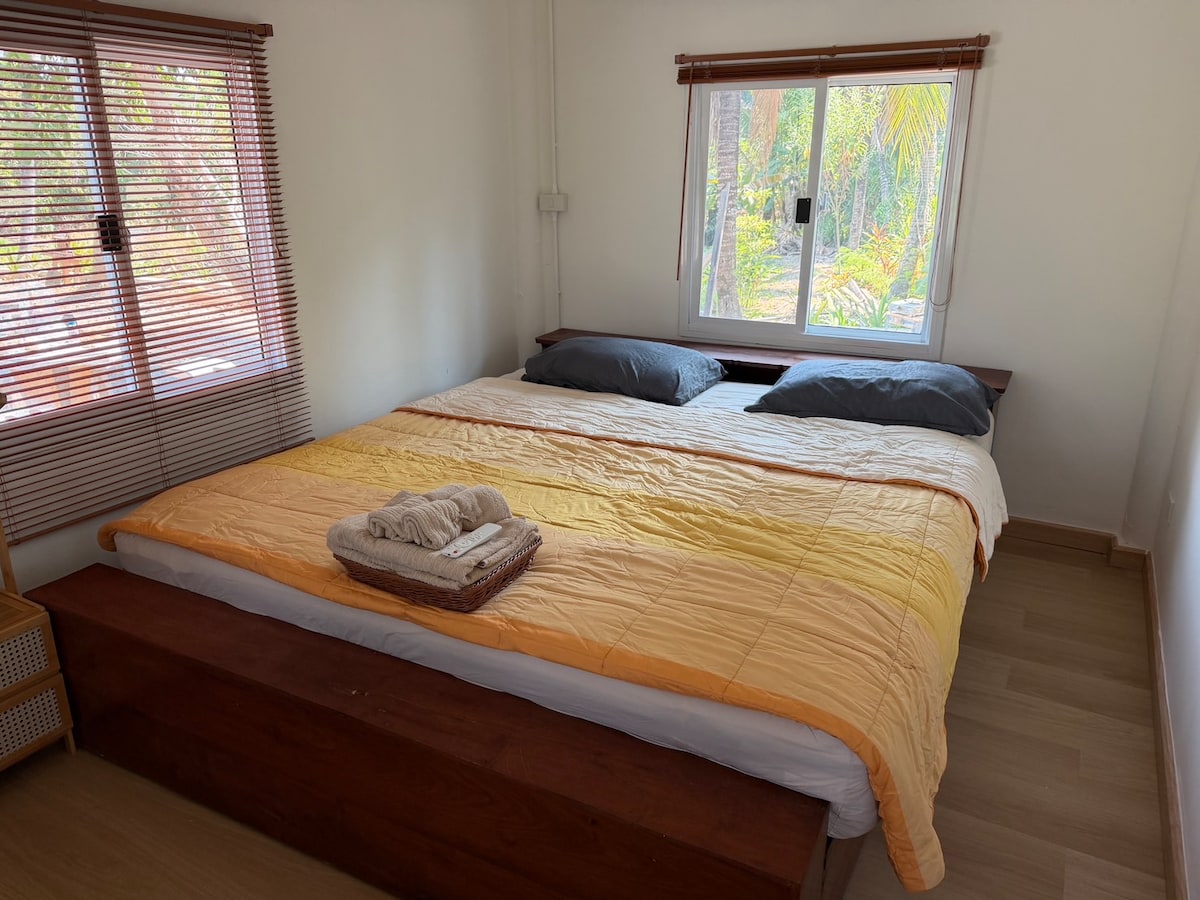 En el norte de Tailandia, un cómodo bungalow, ideal para hasta 4/5 personas, incluyendo piscina, estacionamiento, WIFI, minibar, TV y desayuno. Situado en el campo, fuera de la ciudad y el pueblo, tranquilamente en la naturaleza. Es perfecto para relajarse, explorar el norte y, por supuesto, para familias y nómadas digitales. Está situado en las estribaciones, cerca del monte Doi Inthanon y de las hermosas cascadas, a unos 65 km al sur de la emocionante ciudad de Chiang Mai. Tenemos perros.