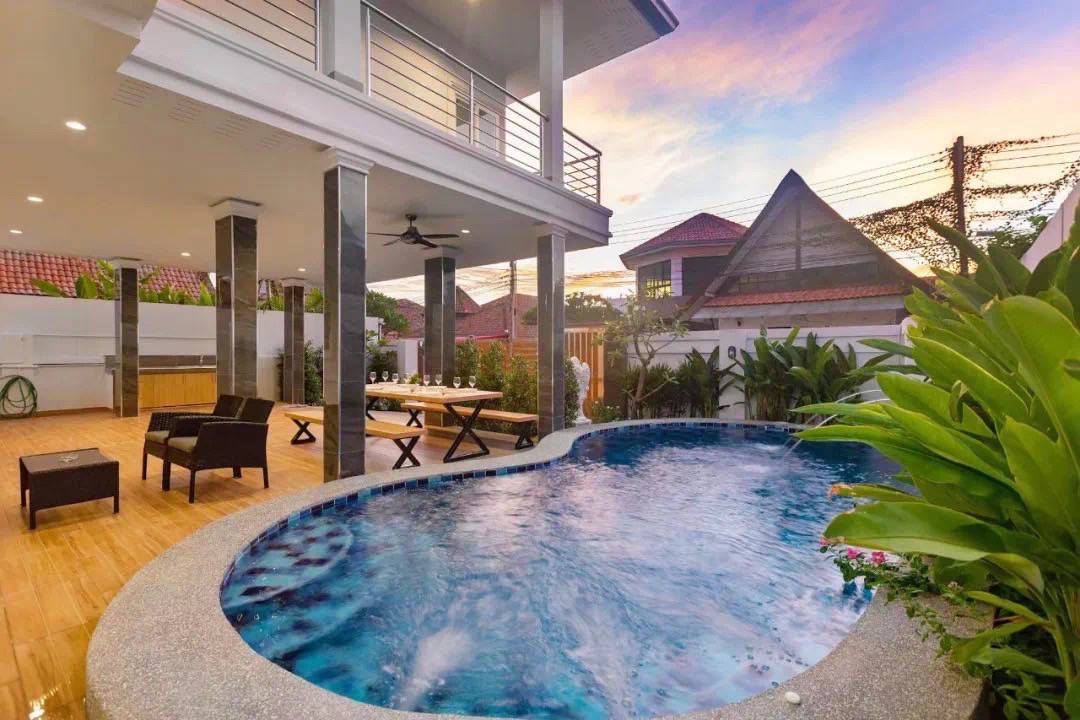 Relájate en una villa con piscina privada en el corazón de Pattaya. - Nuestra propiedad cerrada cuenta con solo 5 villas privadas, cada una disponible para alquilar, lo que garantiza la máxima privacidad y seguridad. - Perfecto para vacaciones en familia, reuniones amistosas, pícnics o celebraciones. Cada villa cuenta con una zona de barbacoa y una cocina totalmente equipada para tu comodidad. - También ofrecemos apoyo y asistencia completos para ayudarte a cumplir tus deseos y solicitudes especiales durante tu estancia.