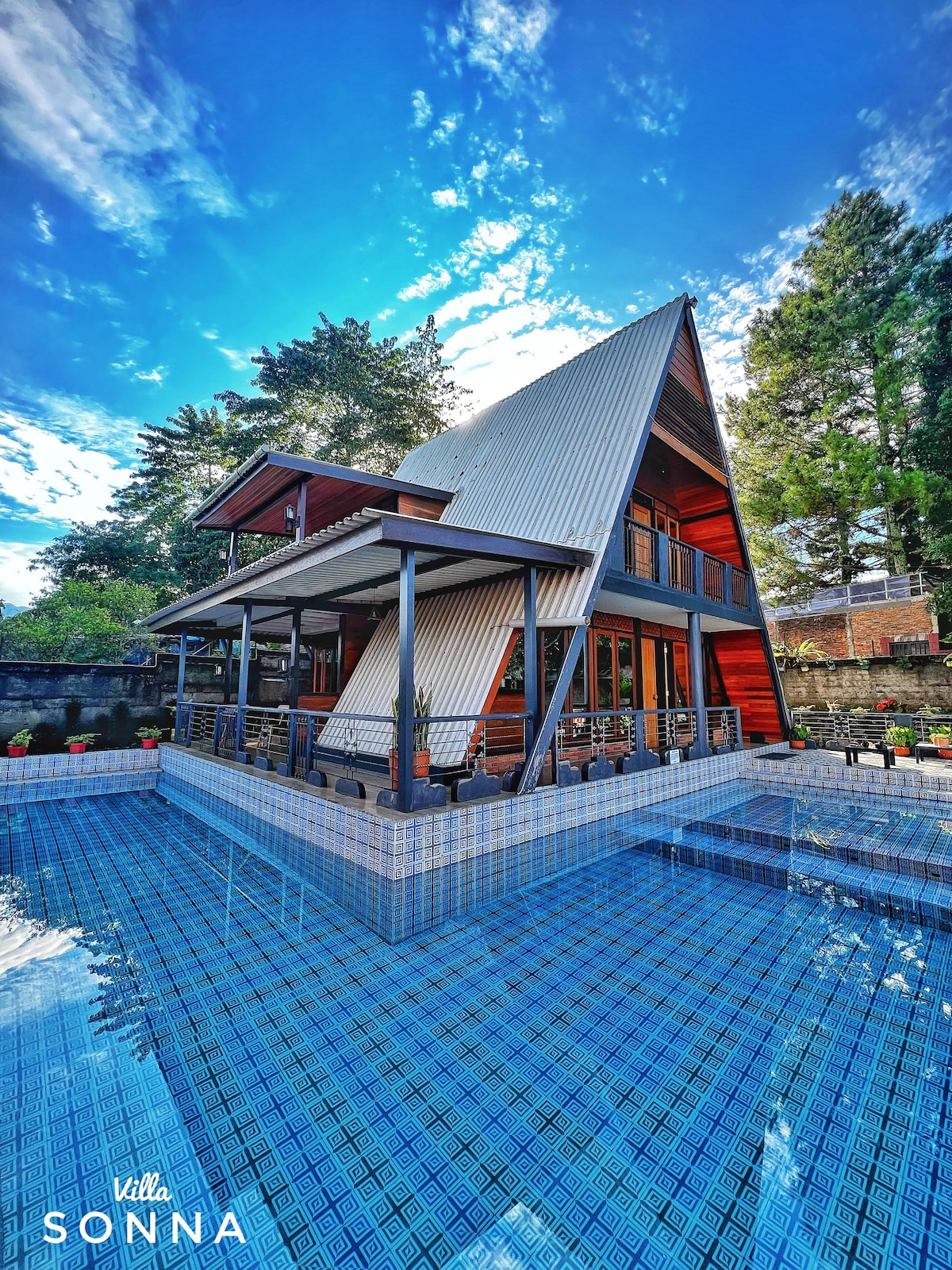 spacious villa for up to 23 guests, offering a serene staycation with a direct view of Mount Salak, complete with 4 bathrooms, full dining amenities, a cozy bonfire area, and the perfect setting for togetherness, healing, or creative shoots.