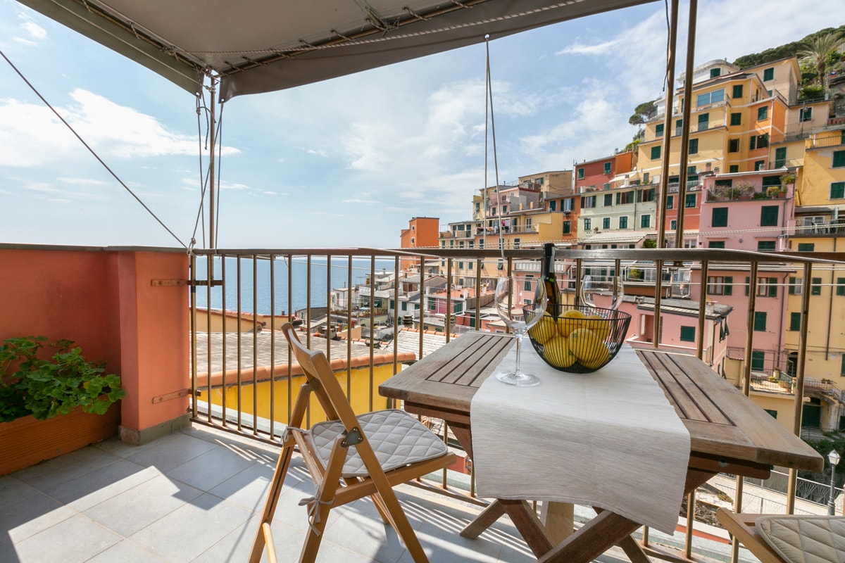 La terraza con vistas al mar. Riomaggiore, Cinque Terre.