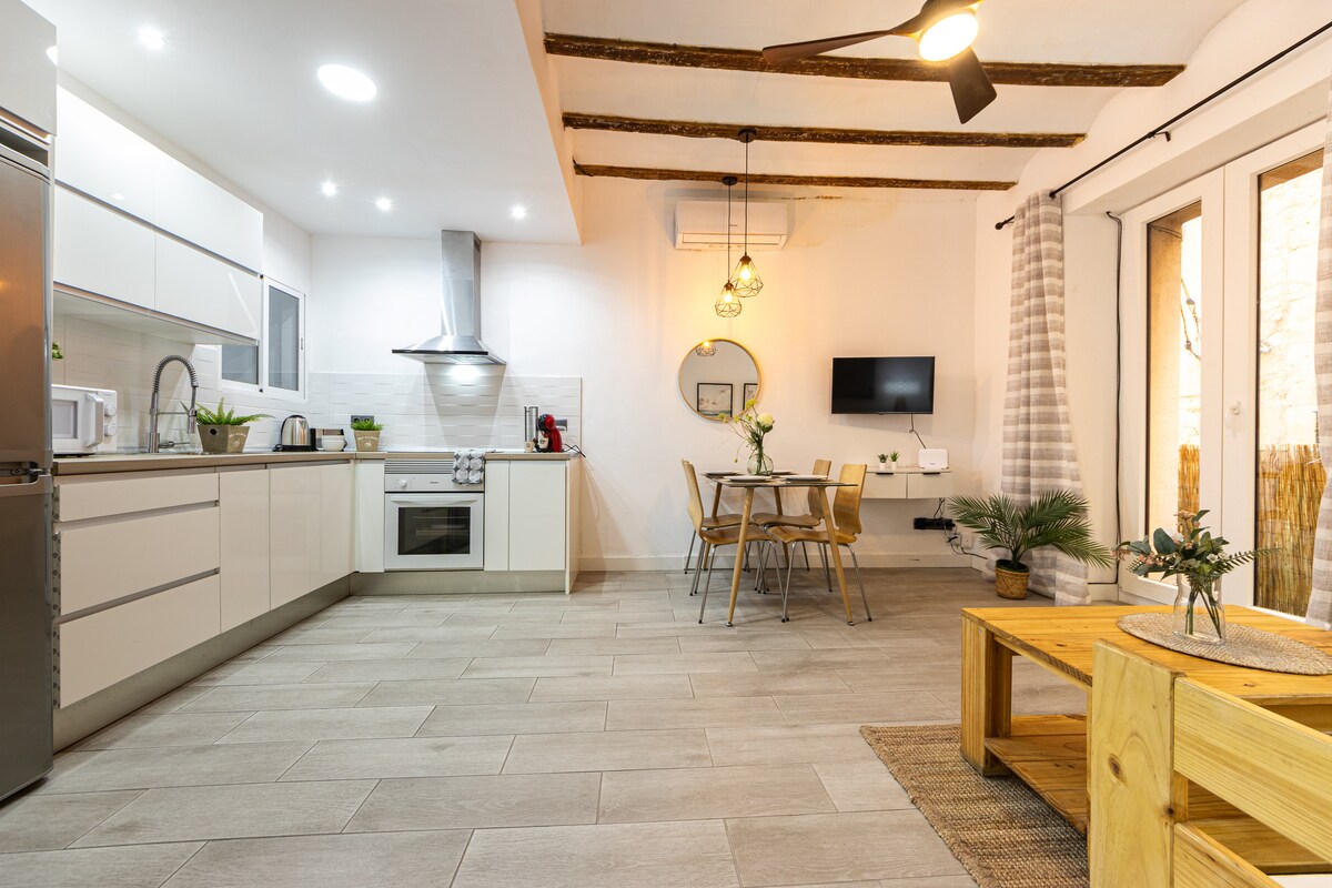 Casa reformada en 2021. Ubicación excelente en el centro del CASCO ANTIGUO (a 2’ de la Catedral, y a 15’ a pie de la playa). Apartamento en segundo piso con acceso por ESCALERAS. Gran sala de estar (smart TV 50" y AACC), cocina y comedor abiertos completamente equipados (lavavajillas, cafetera Nespresso, micro, hervidor de agua, tostadora y “ecofiltro” para el agua filtrada). Wifi gratuita de alta velocidad. 1 Dormitorios King size. 1 Baños completos con ducha efecto lluvia.