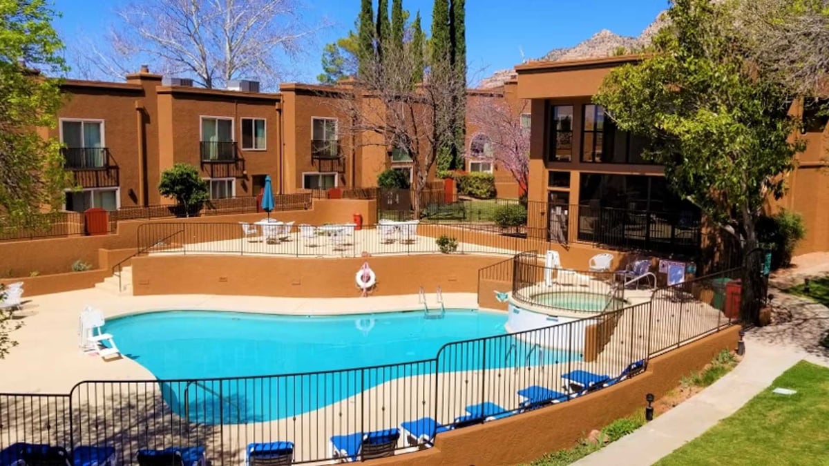 El alojamiento de Jake es un apartamento de 1 dormitorio y 1 baño en la planta baja con una bonita ubicación junto a la piscina. Está a solo 7,4 millas del centro de Sedona, en el corazón del «pueblo de Oak Creek», a pocos pasos de restaurantes, senderismo, tiendas y golf. El complejo, que es casi un parque, ofrece una piscina comunitaria de temporada, gimnasio, cancha deportiva, barbacoas, lavandería en el lugar y preciosas salas de estar comunitarias. El apartamento es limpiado por un servicio de limpieza profesional. Al lado tengo otro alojamiento: airbnb.com/h/happytrailsinn