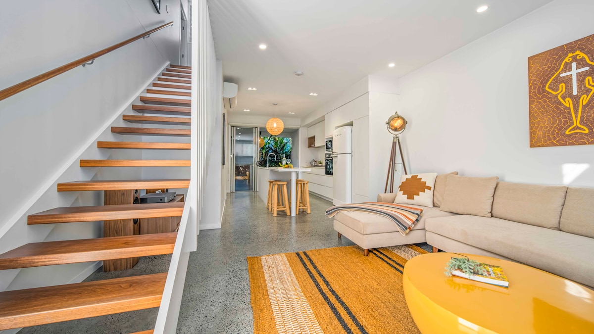 Una estancia perfecta en un hotel mientras exploras todo lo que Byron tiene para ofrecer. A poca distancia del ecléctico centro de la ciudad, de las gloriosas playas, del magnífico faro o del café/desayuno/almuerzo en el emblemático Top Shop justo al lado. Totalmente renovado e incluye lujos sencillos: sistema completo de filtración de agua en el hogar, cama tamaño queen con sábanas de ensueño, cocina americana, baño privado, productos Lief, aire acondicionado y un patio privado relajante con baño al aire libre.