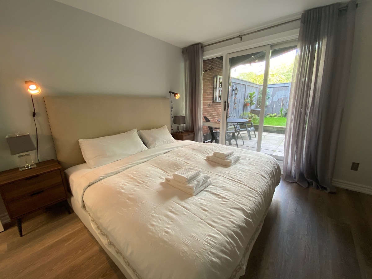 Preciosa casa adosada de 1 dormitorio en la zona de King West, uno de los barrios más modernos, animados y vibrantes, que ofrece algunos de los mejores restaurantes de Toronto. Está lo suficientemente cerca de la acción del centro de Toronto, pero aún tiene esa sensación comunitaria de un barrio similar a SoHo. Este apartamento de 1 dormitorio es perfecto para una pareja o un viajero de negocios soltero. Convenientemente ubicado en la planta baja con un patio trasero acogedor y tranquilo.