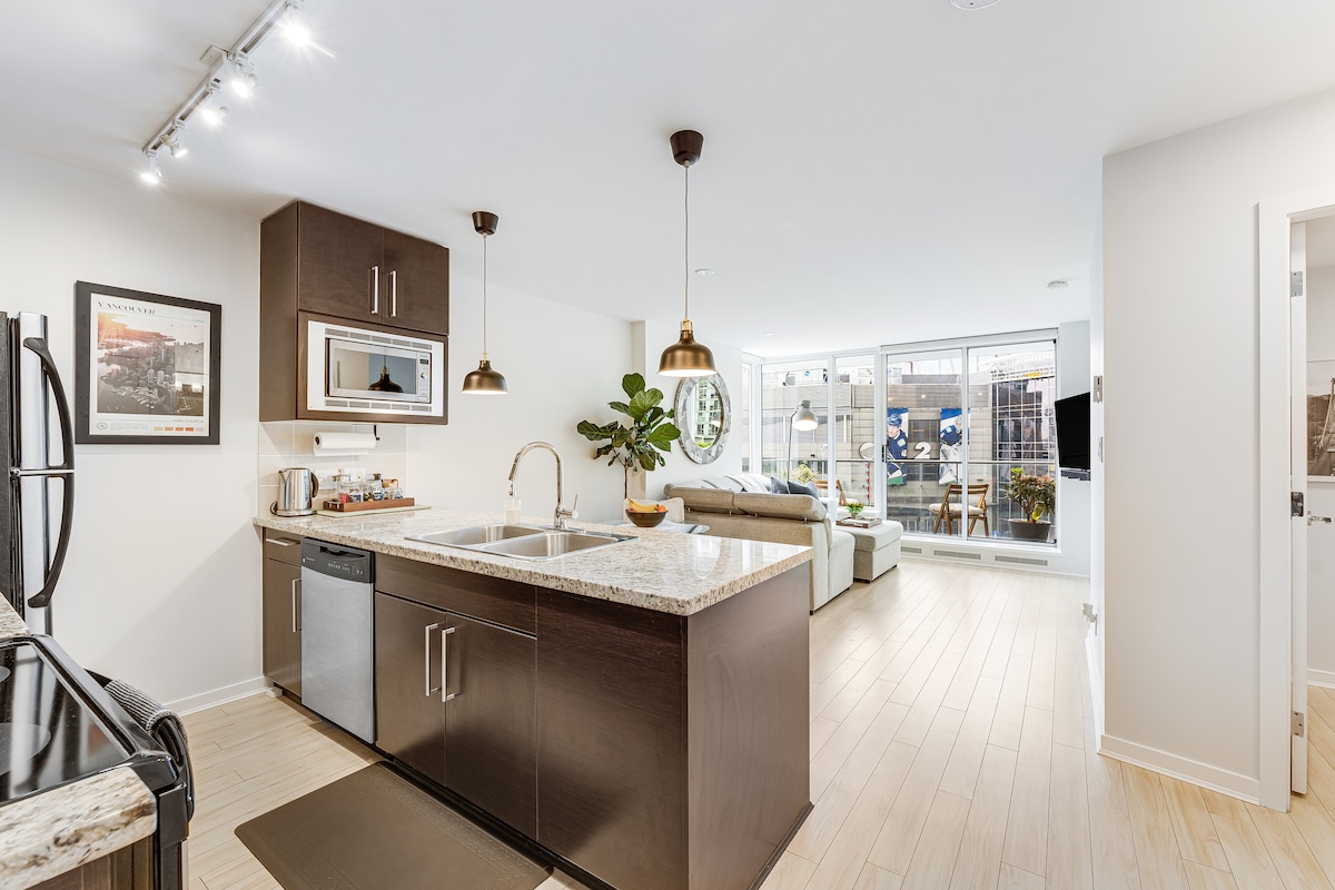 Bienvenido a tu nuevo hogar, un lujoso y bien equipado apartamento ubicado en el corazón de la Villa Olímpica de Vancouver, un barrio construido intencionalmente como una comunidad transitable para la Villa de Atletas Olímpicos 2010. A una estación del centro de la ciudad, a dos manzanas del famoso malecón de Vancouver y rodeado de increíbles restaurantes, bares y cervecerías. También estás a poca distancia a pie de Science World y muchas otras atracciones, incluido el hermoso Granville Island a seis minutos en coche.