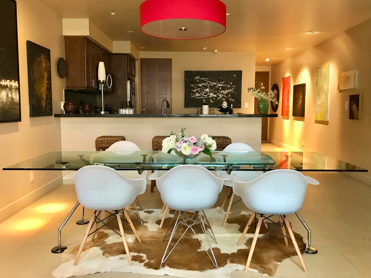 Loft bien equipado muy cerca de The Buenaventura Hotel y sus servicios, así como una tienda de comestibles con una buena variedad de delicias gourmet. La playa está a un corto paseo de distancia. Piso espacioso y relajado con un balcón con vistas a un enorme árbol que alberga muchas aves.