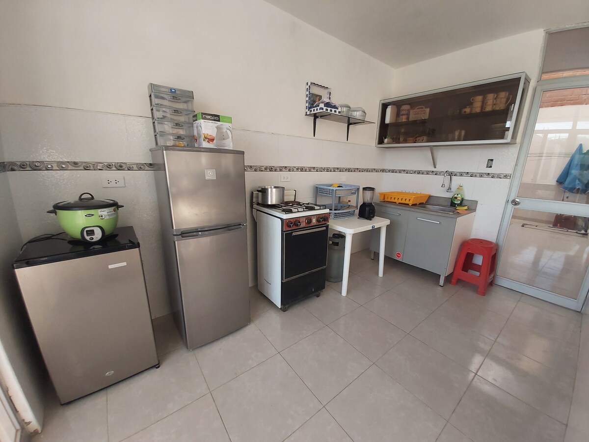 Relájate con toda la familia en este tranquilo y acogedor lugar. Te ofrecemos un minidepartamento dentro de una estancia segura y tranquila, con todo lo necesario para disfrutar los días que requieras. Tienen también una amplia piscina, estacionamiento interior, área de parrilla y otras comodidades para tu familia.