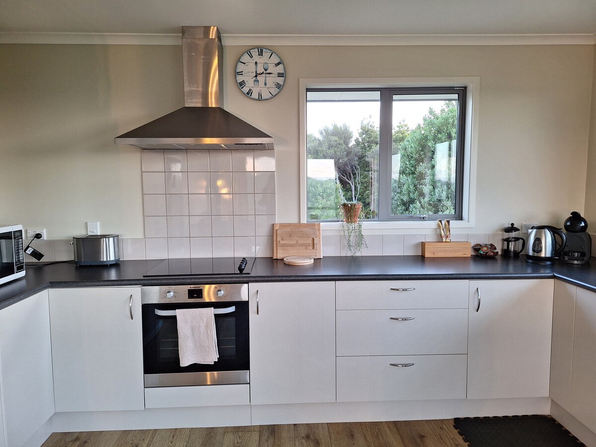 Moderna bahía de kiwi arquitectónica enclavada en el borde de una laguna de marea entre Ligar Bay y Tata Beach. El Bach es un compacto de 55 metros cuadrados con una gran terraza protegida y cubierta con sol todo el día. Un dormitorio principal se conecta con un salón compacto y un baño privado, comedor y cocina desde cualquier lado, todos con vistas completas del agua y la laguna. Hay una cápsula para dormir separada con una cama tamaño queen a 2 metros de la vivienda principal para 2 huéspedes adicionales. Increíble segunda ducha caliente al aire libre bajo los árboles.