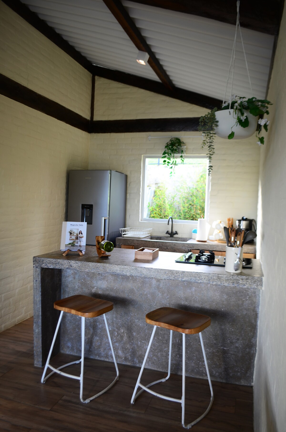 Disfruta de un bungalow amplio con sala comedor exterior en medio de un bello lugar, Entre Bosques Tayrona. Cocineta privada. wifi de alta velocidad Starlink. Jardín rodeando el bungalow. La finca ecoturística cuenta con piscina, restaurante, senderos y riachuelo y a solo media hora de caminata de la playa o 10 minutos en carro.