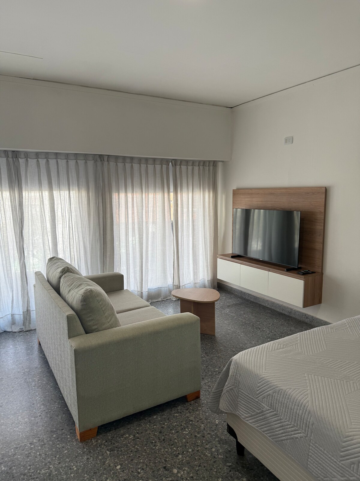 Disfrutá de una estadía confortable en este hermoso departamento de un dormitorio. Cuenta con una cocina-comedor amplia y totalmente equipada. El espacio es muy luminoso y ofrece una vista directa a un parque, lo que brinda un ambiente tranquilo y relajante. El departamento esta equipado con todo lo necesario para que te sientas como en casa: utensilios de cocina, vajilla, ropa de cama, toallas, Wi-Fi y más. ¡Listo para que solo tengas que preocuparte por disfrutar tu estadía!