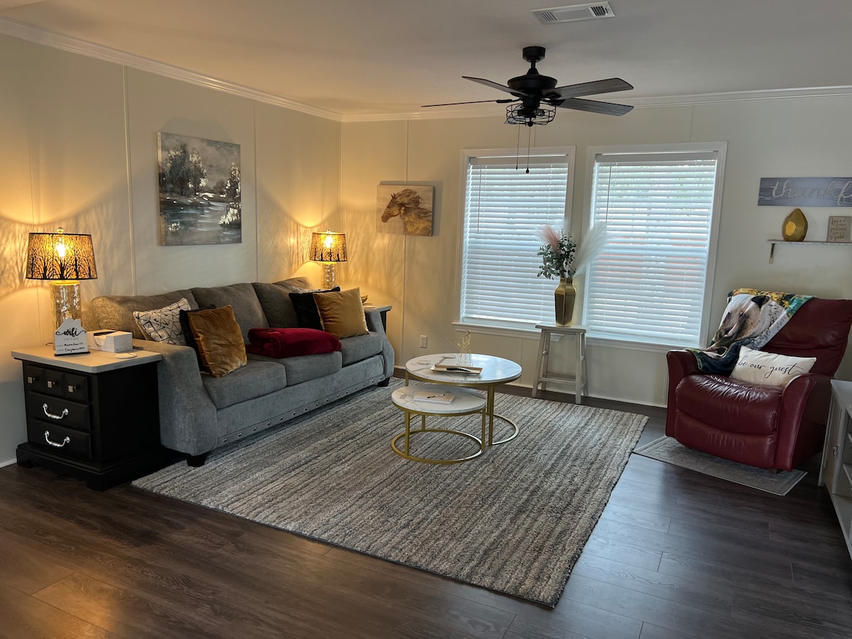 ¡Encuéntrate a pocos minutos de Poe y Ginnie Springs, Rum Island y State Parks en cuatro habitaciones completamente amuebladas! Cierra la puerta de la sala de estar y disfruta de total privacidad allí. Una cama tamaño king en el dormitorio y una cama individual y un sofá de tres plazas en la sala de estar. Camina dos manzanas hasta los restaurantes y boutiques del centro de la ciudad. Wifi, persianas para oscurecer la habitación, ventiladores de techo y aire acondicionado mini-split en todas partes, además de más de 200 canales en una Smart TV. Ofrecemos servicio de café AM gratuito con crema y azúcar. Capacidad para 3 personas.