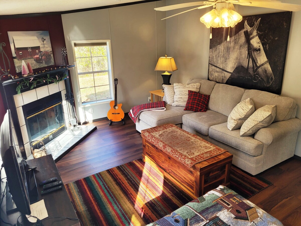 ¡Te damos la bienvenida a The Farmhouse! Esta adorable casa de 2 pisos se encuentra en 17 hermosos acres listos para explorar. La decoración temática hace que esta casa sea única. Equipada con todas las comodidades y servicios de un hogar. Porche grande con parrilla y mesa de picnic extragrande, chimenea, cenador y garaje para 2 coches. Trae tus propias motos de cross/vehículos todo terreno. Aproximadamente a 1 hora del aeropuerto de Jax, a minutos de muchos senderos, el río Suwannee, el parque estatal Big Shoals, el parque estatal Stephen Foster, pesca, Bienville Outdoors y a 11 millas del parque musical Spirit of the Suwannee.
