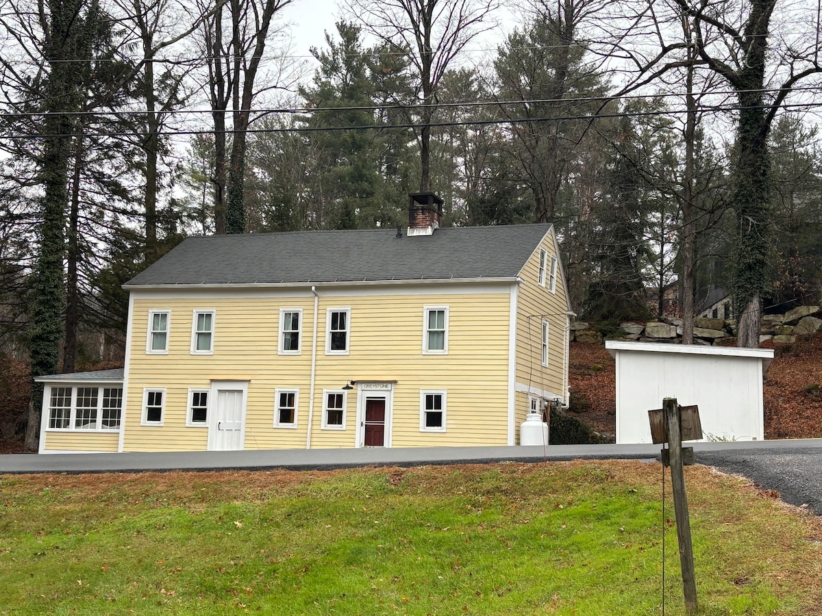 Renovación completa con privacidad. La casa de campo rural de los trabajadores del molino se ha mejorado con toques de mediados de siglo, dejando los acabados antiguos. Con vistas a los rápidos de Kinderhook Creek en una carretera rural pavimentada y AHET Rail Trail. A minutos de Hudson y Kinderhook. Es posible que veas reyezuelos de Carolina, cardenales, herrerillos, pájaros carpinteros, jilgueros y colibríes. El arroyo de enfrente atrae a águilas calvas y doradas, águilas pescadoras, garzas azules, halcones de cola roja, patos y gansos. NO SE PERMITEN MASCOTAS.
