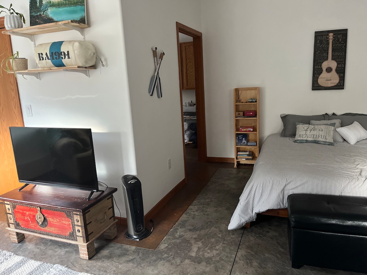 Ven a alojarte en el principal alojamiento frente al río de St. Helens con vistas espectaculares al río Columbia. Ubicado sobre Crooked Creek Brewery, la única cervecería de St Helens con su cocina recién abierta, este espacioso apartamento de 800 pies cuadrados 1 cama / 1 baño acaba de ser completamente renovado y cuenta con una cocina completa, lujosa bañera/ ducha extragrande, encimeras de hormigón y pisos de madera y baldosas en todas partes. El espacio perfecto para relajarte y relajarte. Cerca de Portland para una escapada de fin de semana fácil.