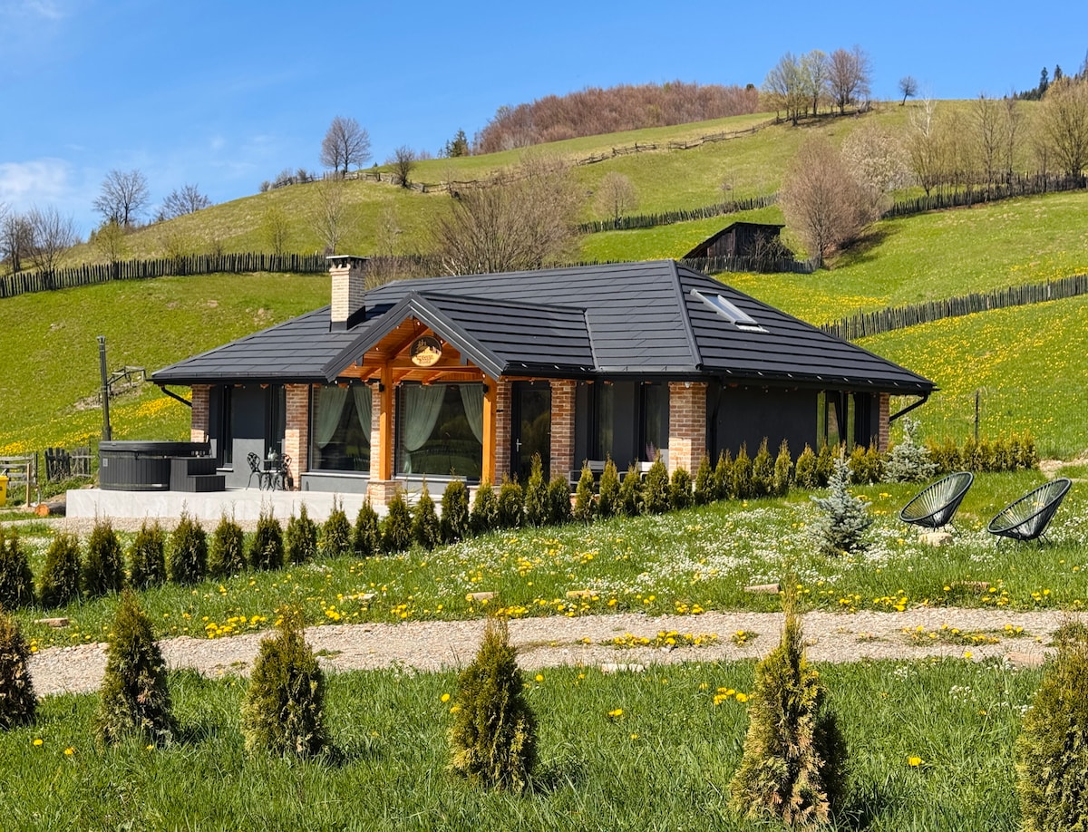 A-frame de poveste în inima Bucovinei!🇷🇴 Ce îți oferim: 🛏️ 5 camere cu baie proprie – intimitate și confort pentru 8 persoane 🛋️ 2 living-uri spațioase – pentru seri liniștite sau jocuri cu prietenii 🍳 Bucătărie complet echipată – ca să gătești ce și cum îți place 🔥 Foișor cu grătar & loc pentru ceaun – pentru mese savuroase în aer liber 🫧Jacuzzi încălzit, într-un foișor închis – relaxare absolută Locul ideal pentru cei care caută liniște, confort și o experiență autentică în Bucovina.