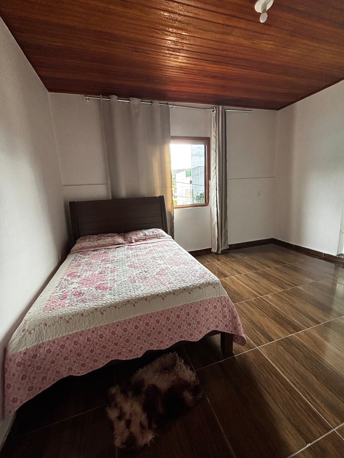 Um quarto aconchegante ideal para quem busca descanso após um dia de trabalho. O espaço conta com uma cama confortável, ambiente tranquilo. A decoração é simples, transmite uma sensação de acolhimento. enquanto a localização estratégica permite fácil acesso ao centro da cidade