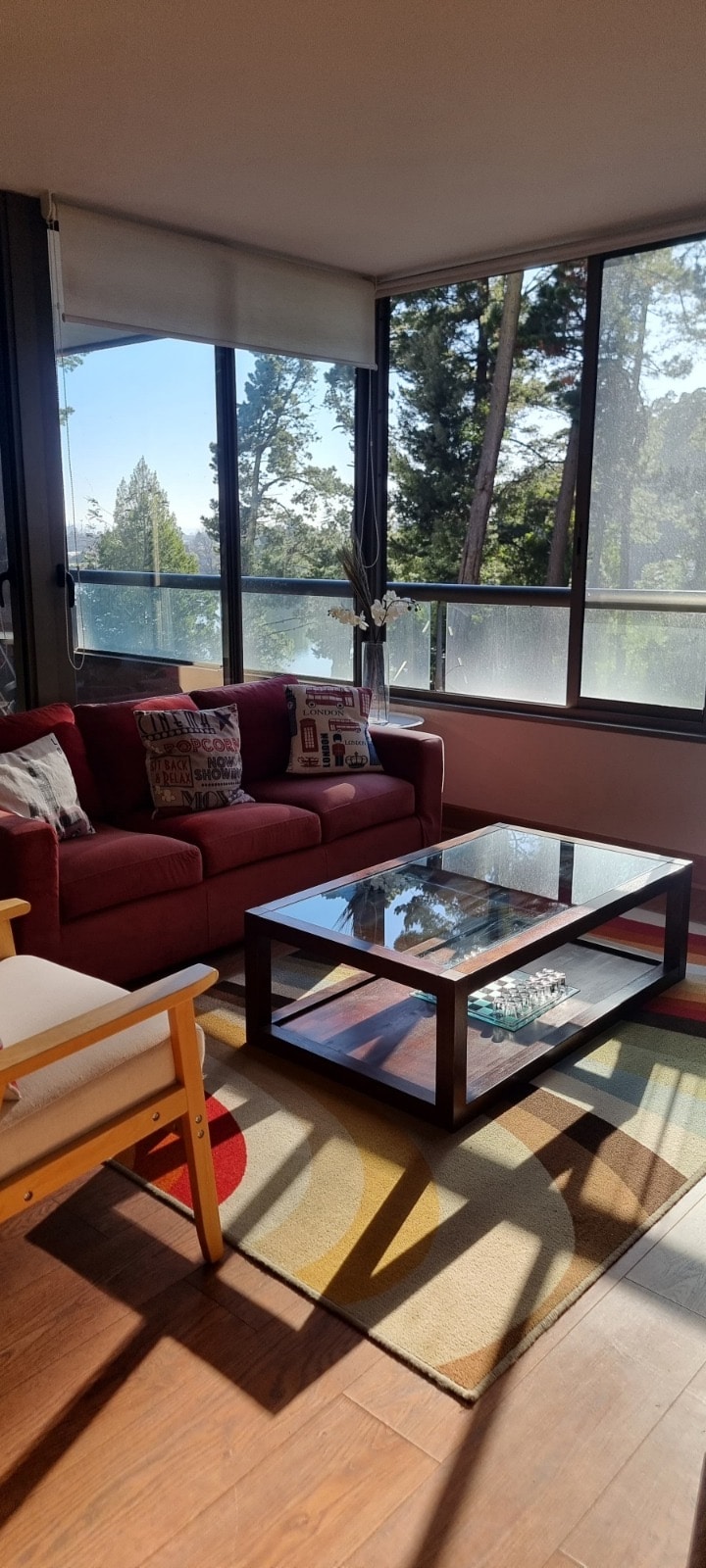 Departamento en piso 16, acogedor, cómodo y completamente equipado, de 2 habitaciones y 2 baños en la comuna de Concepción. Excelente ubicación, con acceso expedito a supermercados, clínicas y centros comerciales, con vista a la Laguna Tres Pascualas. Ideal para familias o grupos pequeños que buscan comodidad y conectividad. Equipado con conexión Wi-Fi, Smart TV 4K de 55”, acceso a Netflix y Directv Go (con cuenta personal). Estacionamiento privado en subterráneo.