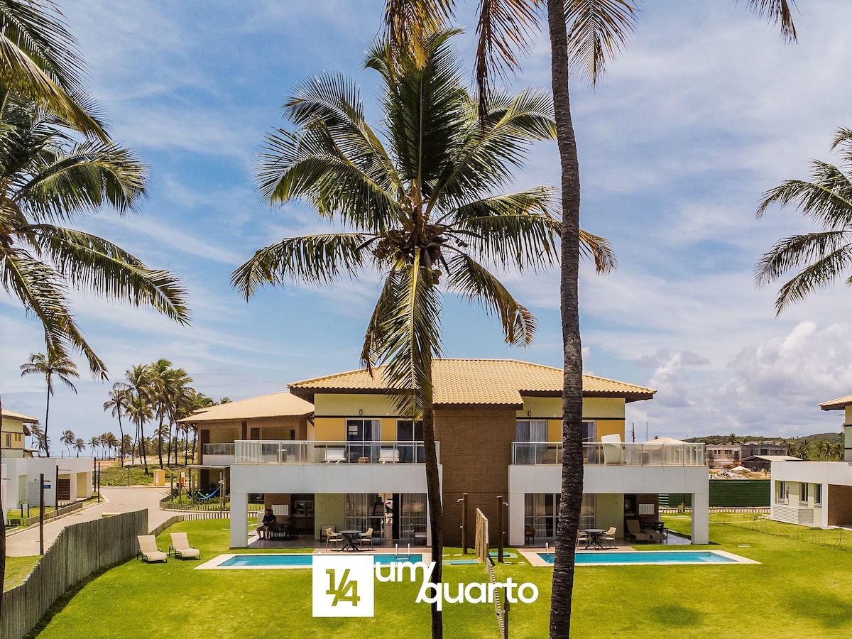 Cada una de las casas tiene vistas a la Ponta de Inhambupe, donde el río se encuentra con el mar, proporcionando una vista impresionante en una de las zonas más reservadas del condominio. Hay dos plantas con un total de cuatro suites, piscina privada con barbacoa y zona gastronómica, además de una suite de escritorio