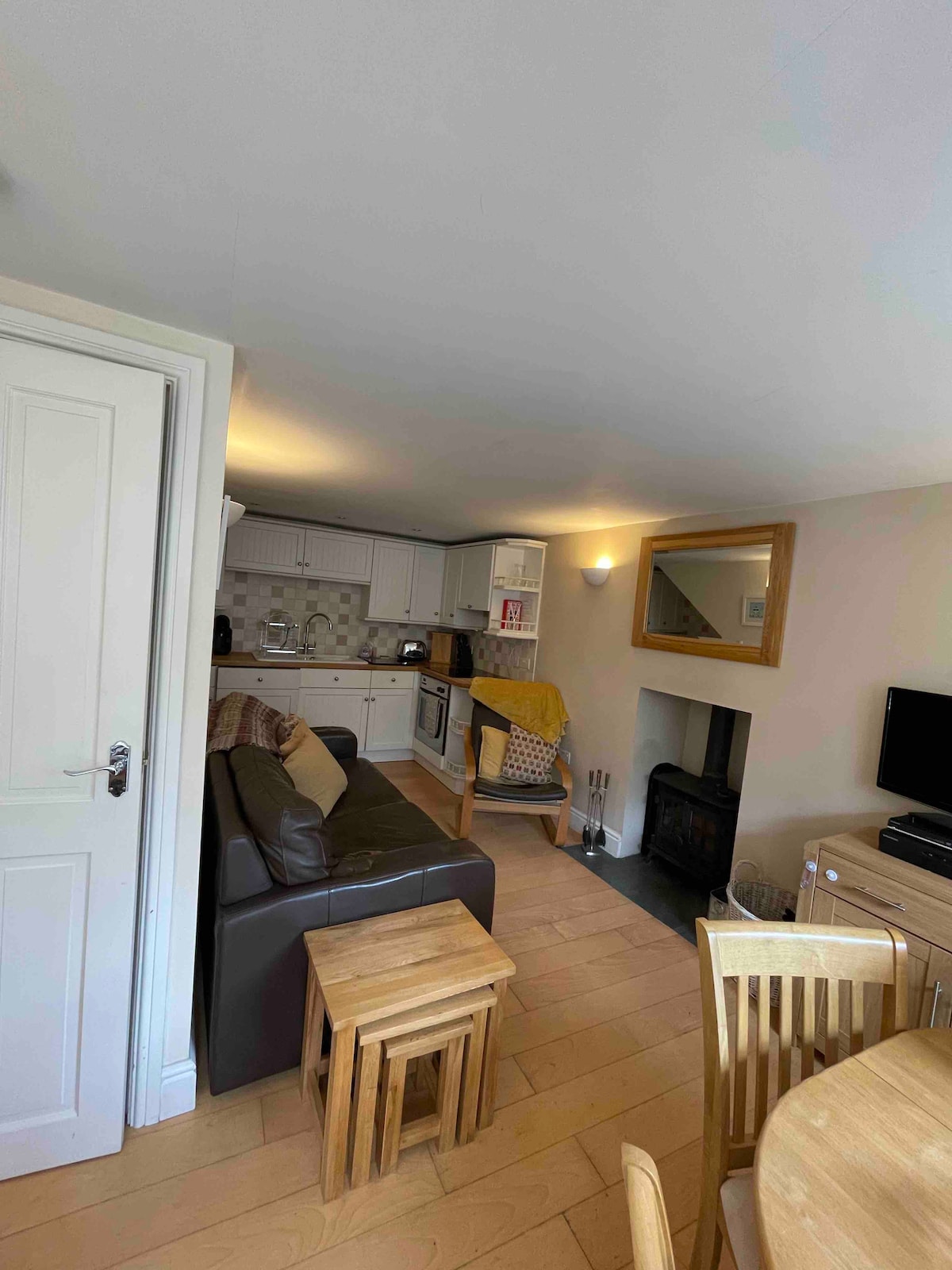 Esta casa de campo cuidadosamente convertida tiene como objetivo proporcionarle todas las comodidades de un hogar acogedor, pero con una gran cantidad de estilo que le permite saber que está siendo tratado en algún lugar lejano. La propiedad se divide en tres plantas, con una cocina-comedor a medida en la planta baja, un salón de planta abierta con asientos en las ventanas, una estufa de leña y un televisor moderno para relajarse. En la planta superior se encuentra el dormitorio con un gran baño de estilo en suite que está decorado de forma peculiar para ofrecer una estancia verdaderamente única.