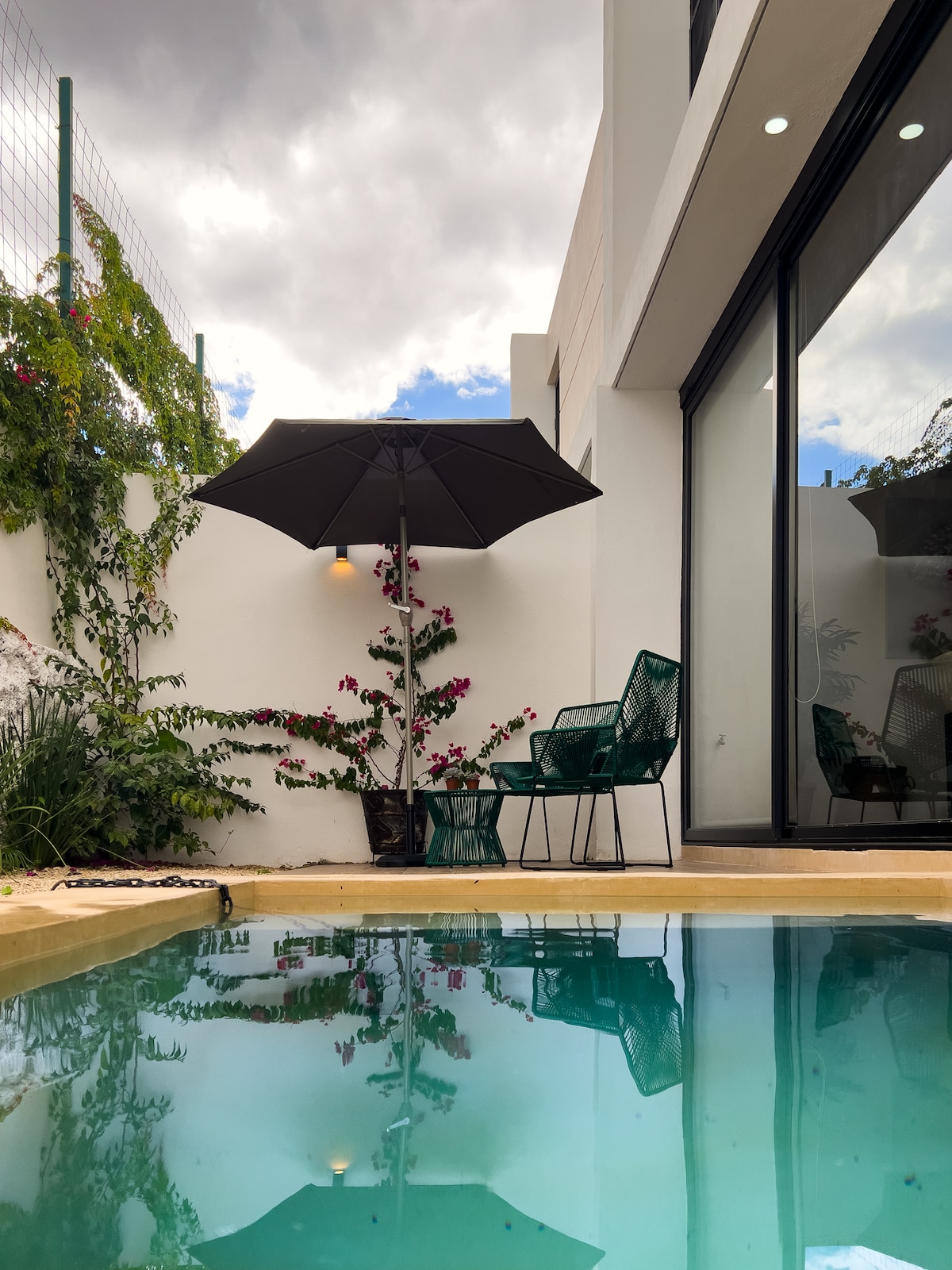 ¡Experimenta el lujo y la comodidad en nuestro alojamiento inteligente de ensueño! - Totalmente equipado y climatizado. - Sumérgete en la tranquilidad de nuestra piscina privada tipo laguna. - Contempla el estanque con peces y plantas. - Dos dormitorios con baños privados y acceso directo a la piscina. - Disfruta de la terraza con parrilla para cocinar al aire libre mientras te refrescas en la alberca. - Sistemas inteligentes sin costos adicionales. ¡Bienvenidos al paraíso!