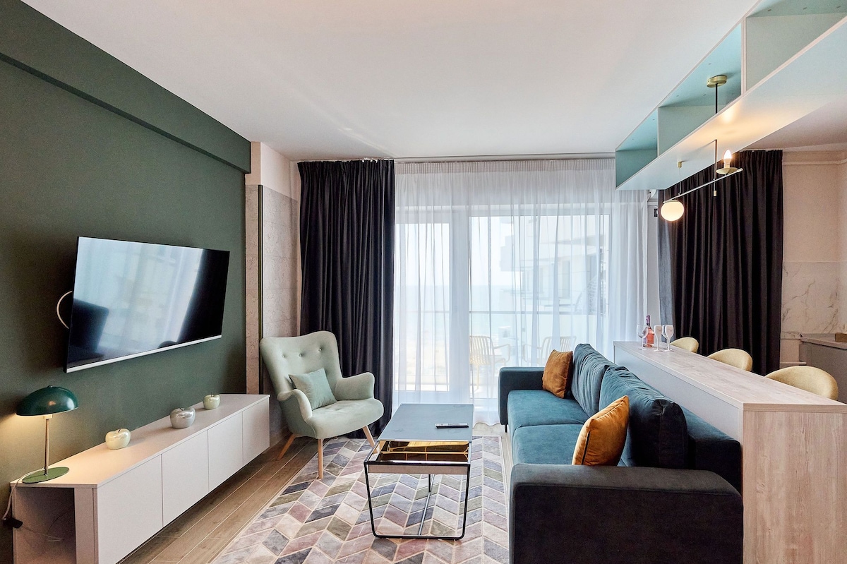 Me complace presentarte mi apartamento de 72 metros cuadrados en Mamaia Nord - ZEV Imperial. Está en una zona tranquila, a 300 m de la playa. Cada dormitorio tiene una salida de balcón a un balcón. Está totalmente equipado y amueblado, después de las últimas tendencias en lujo y calidad. Vale la pena mencionar: muebles hechos a medida en Italia, colchones y almohadas Dormeo, aparatos electrónicos y electrodomésticos de marca, etc. También se proporciona un espacio de estacionamiento gratuito
