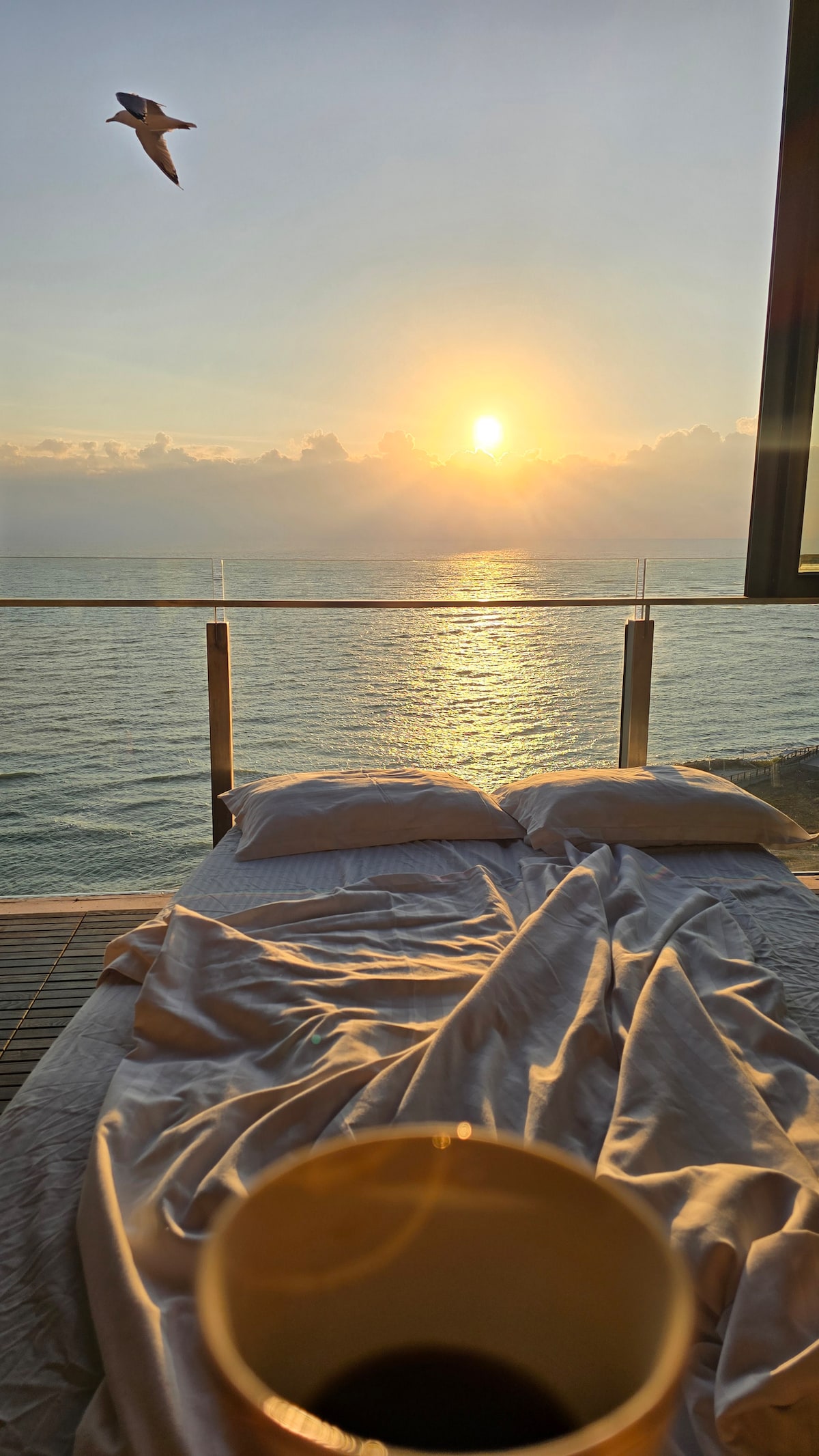 Apartamento Tequila Sunrise: tu lugar de descanso junto al mar | Mamaia Nord Despiértate con el mar en tu patio trasero y termina el día con un cóctel en tu terraza privada de 60 metros cuadrados. A solo 40 metros de las playas de Mackerel y Manor, este apartamento en el sexto piso te ofrece asientos de primera fila con impresionantes vistas al mar. La terraza es tu salón al aire libre: cómodas tumbonas, hamacas, plantas exuberantes y esa brisa salada que te hace olvidar qué día es. ¿Bares, comida y ambiente veraniego? Todo a un paso.