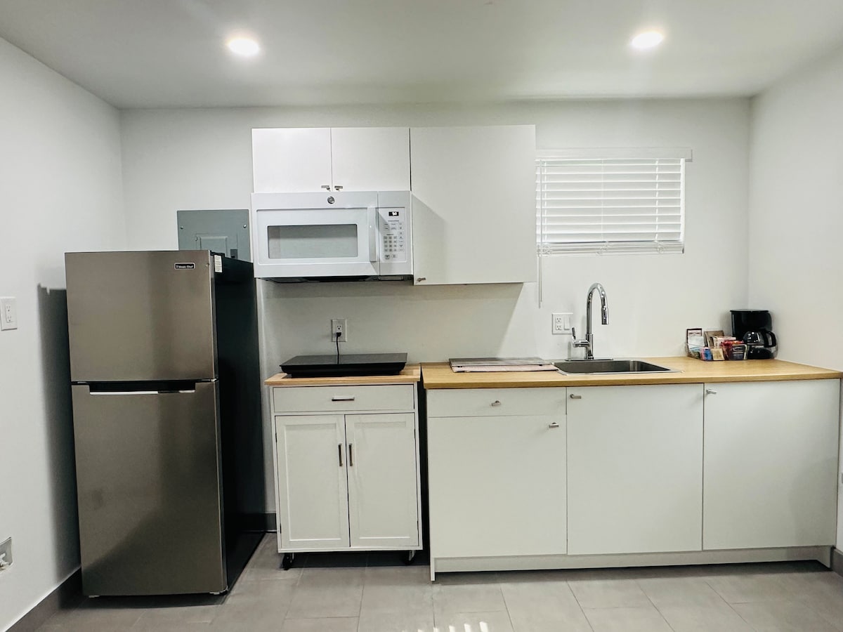 ¡Estudio de los años 50 totalmente renovado (2024) en un barrio seguro y tranquilo de Orlando! Disfruta de una lujosa cama tamaño queen, ducha a ras de suelo, Roku TV y cocina completa con Keurig. Incluye un camino privado, entrada independiente y una acogedora sala de estar con una elegante decoración moderna. Lavadora y secadora en la unidad para tu comodidad. A solo 3 millas del centro, 10 millas de Universal, 8 millas del aeropuerto y 18 millas de Disney, perfecto para parejas o viajeros solos que buscan comodidad, privacidad y estilo moderno en un entorno tranquilo.