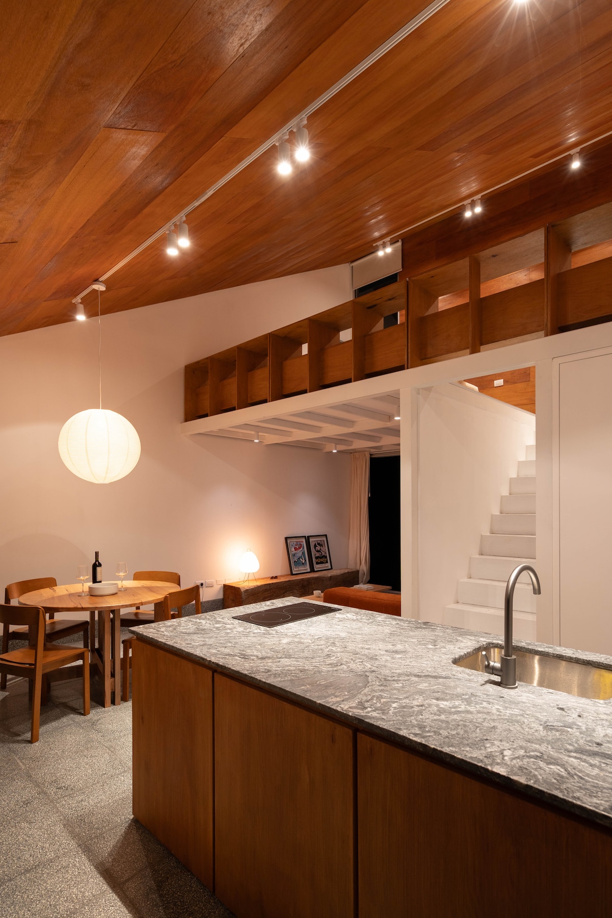 La casa cuenta con una excelente distribución. Dos plantas con 1 habitación en planta alta, con cama Queen y un amplio escritorio para trabajo remoto. Posee 1 baño completo con ducha escocesa con jets de alta presión. Un balcón con bellas vistas panorámicas a las sierras. Living con un sofá cama con hogar a leña. Cocina completamente equipada. También posee Deck exterior con vistas sobresalientes, bañera exterior, asador con parrilla, lavabo y un fogonero de piedra para disfrutar del jardín.