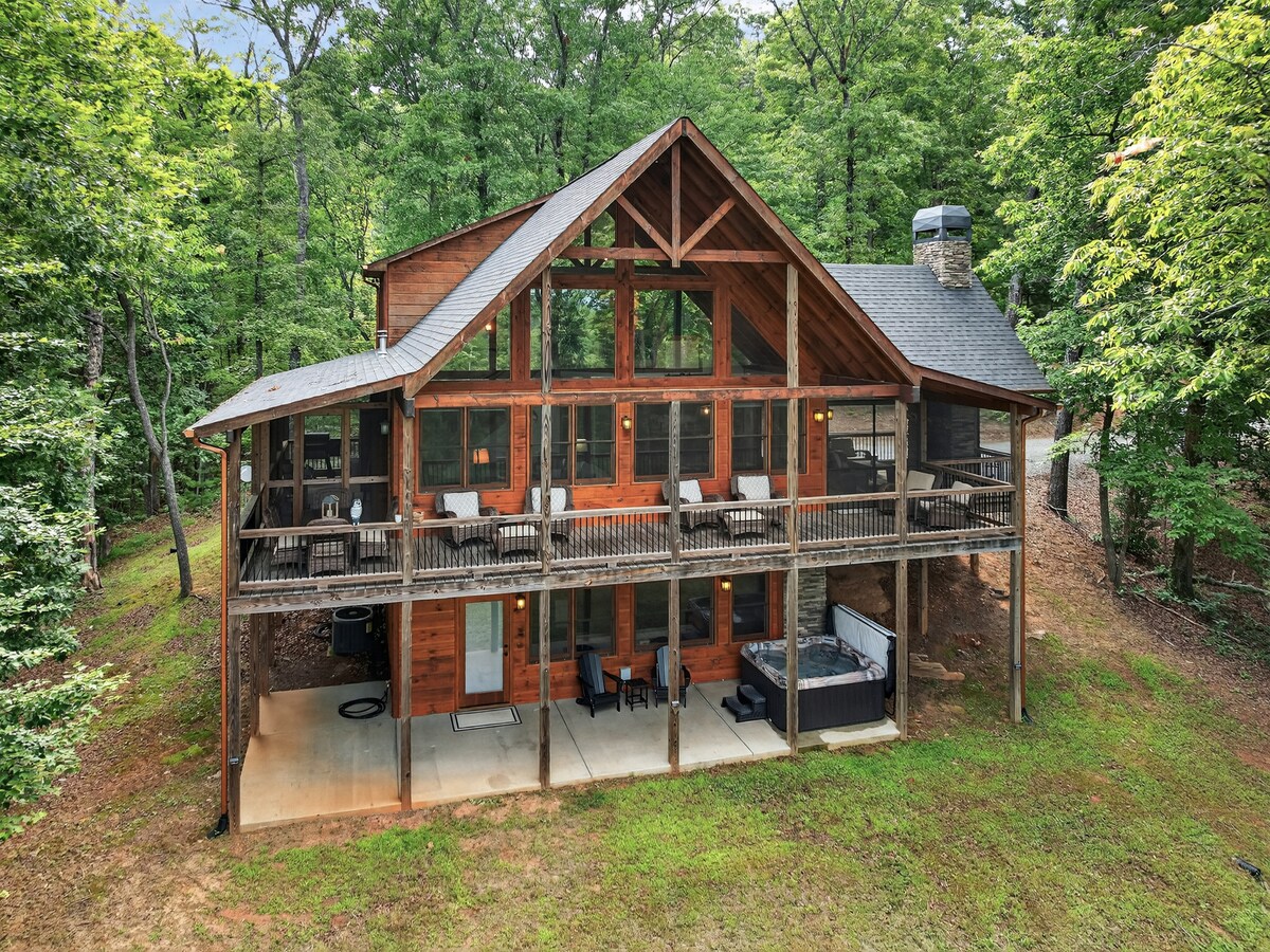 Bienvenido a tu cabaña totalmente privada, donde tendrás completa serenidad, rodeado de nada más que el bosque Blue Ridge. Elige tu placer: la sala de juegos en el sótano, los asientos y servicios al aire libre en las grandes terrazas traseras, las cómodas camas tamaño king, el magnífico y moderno interior de la cabaña o aventurarte por el bosque para encontrar nuestro pozo de fuego privado junto al relajante arroyoque que corre justo por la propiedad. ¡Serán unas vacaciones de las que nunca querrás marcharte!