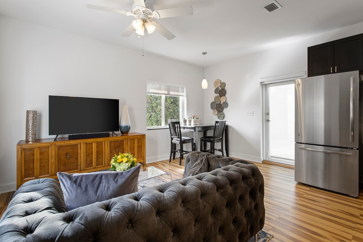 ¡Te damos la bienvenida a tu escapada perfecta a Miami! Aterriza y relájate en esta acogedora y moderna casa de huéspedes a solo 10 minutos del aeropuerto MIA. Ideal para viajeros solitarios, parejas o familias pequeñas; perfecto para escalas, escapadas rápidas, viajes de trabajo o explorar la ciudad. En el interior, disfruta de un espacio limpio y moderno con una cama acogedora, sofá cama, cocina completa, wifi rápido, TV inteligente y aparcamiento gratuito. Cerca del centro de la ciudad, playas y restaurantes, este lugar es tu escapada a lo mejor de Miami.