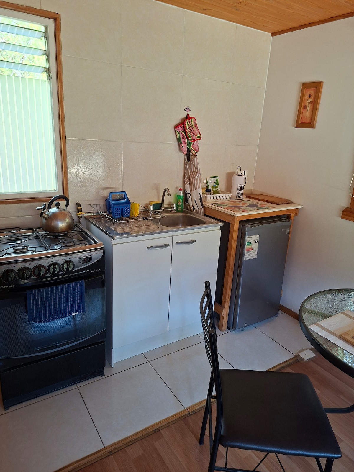 Ve también El Arca Naranja, Cabaña Ecológica Cabaña ecológica en plena naturaleza, cerca de Santiago, para 2 personas. Cocina equipada, cocina a gaz, horno eléctrico, frigo bar, baño interior, ducha, agua caliente y salamandra. Caminatas, rutas de bicicletas, río para bañarse, venta de artesanía, parrilla, hamaca Disponibilidad semana y fin de semana Descuento para estadías largas