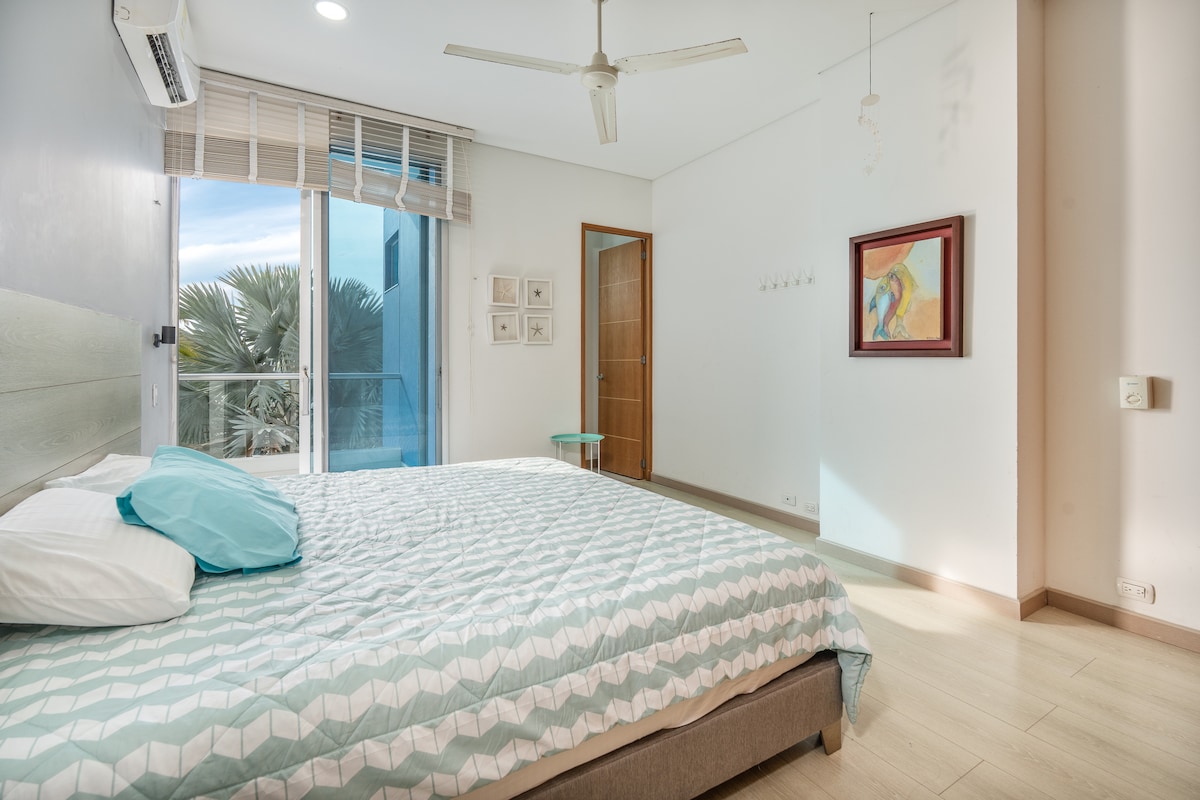 Apartamento moderno pet-friendly en la mejor zona de Coveñas y con la mejor vista al mar que podrás encontrar. El apartamento tiene 3 habitaciones cada una con baño interno. Además, cuenta con una cocina totalmente equipada, zona de labores con lavadora, sala, comedor y 2 balcones tipo terraza donde podrás ver los mejores atardeceres y amaneceres! El conjunto cuenta con un amplia zona de parqueaderos, ascensor, lobby, piscina y zona de playa privada.