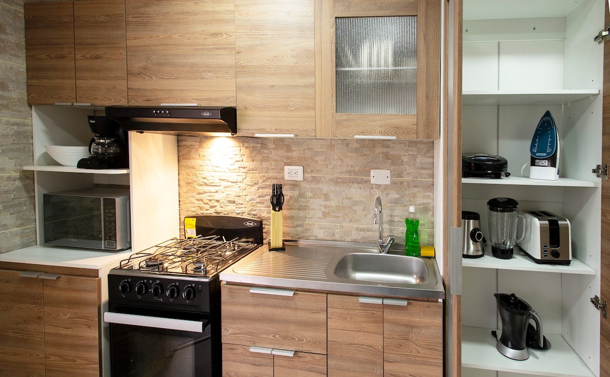 Disfruta de la sencillez de este alojamiento tranquilo y céntrico. Este apartaestudio tiene una ubicación estratégica: Fácil acceso. Ubicado en un edificio Nuevo a media cuadra de Corferias, Ágora, a 5 cuadras de la Embajada Americana, y central a lugares turísticos. Este aparta estudio cuenta con cama semidoble, nicho (cama auxiliar) baño, armario, cocina y escritorio. Cocina equipada Ubicado en un segundo piso con ascensor. Se cuenta con servicio de transporte puerta a puerta. (Adicional).