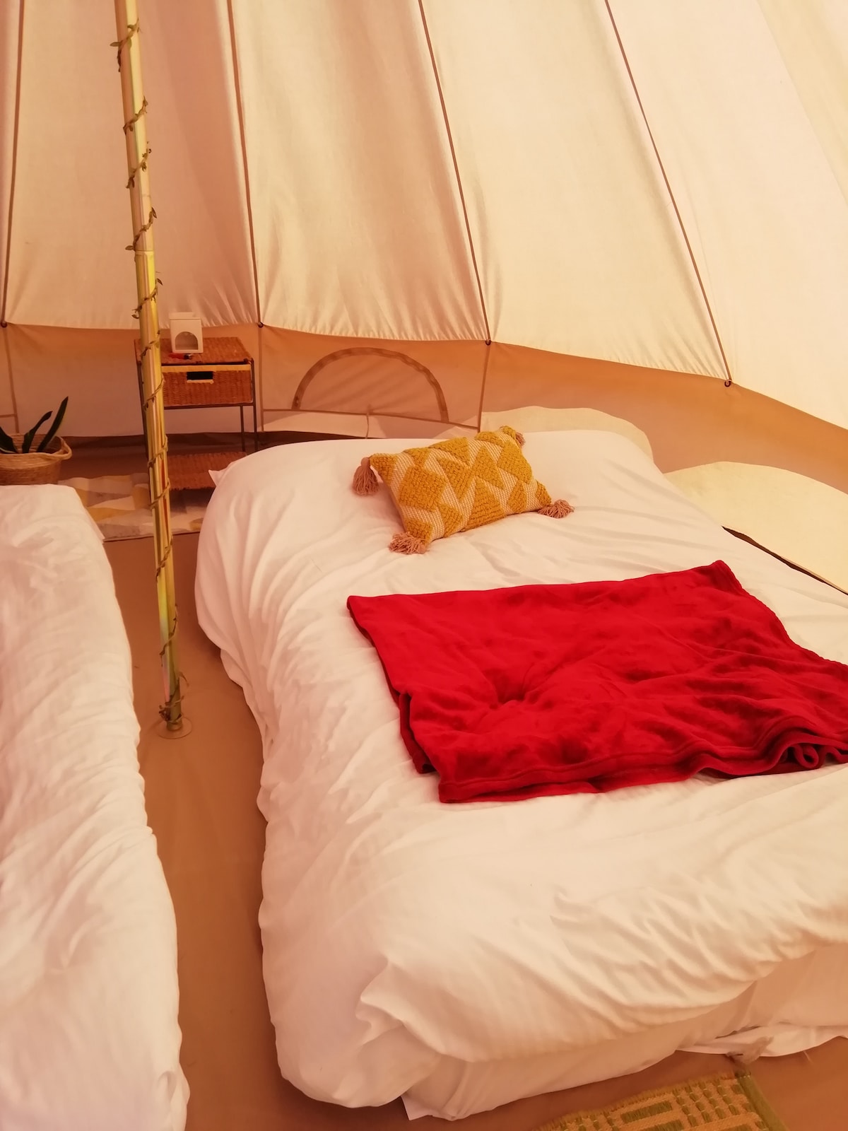 ¡Una habitación de hotel de lujo en una tienda de campaña! Todas las comodidades del hogar, impresionantes puestas de sol, vistas al campo y siluetas de minas de estaño desde tu puerta. Nuestra fabulosa Lotus Baby Belle se encuentra en un campo tranquilo a menos de 10 minutos en coche de las populares playas de natación y surf. Comodidades del hogar que incluyen wifi gratuito, USB, mininevera, hervidor de agua, té, café y azúcar. Mesa de picnic, sillas y 2 tumbonas para mayor comodidad. También una barbacoa/fogata, cocina/parrilla de camping, ollas/sartenes/cuchillos y cubiertos. ¡Verdaderamente idílico! Los perros son bienvenidos y pueden correr libremente...