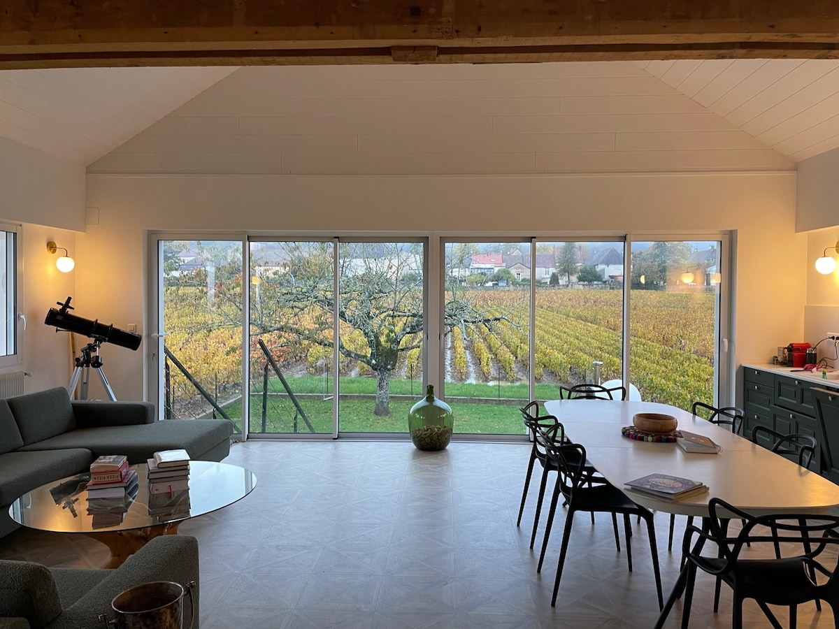 En el corazón del encantador pueblo de Gamay-Saint-Aubin,esta antigua casa vive al ritmo de la viña y el vino,los amantes del paseo se sentirán seducidos por la belleza de las laderas y por la vista panorámica.Idealmente situado:2 km de Puligny-Montrachet, a 6 km de Meursault . Es una casa de campo en una casa antigua, idéntica a un loft con una gran sala de estar que incluye una cocina. La habitación está en lo alto en un altillo con una cama grande de 160 x 190 (se puede añadir una cama plegable para niños. Sala de estar con sofá cama iKea. Cocina: tostadora, cafetera, nespresso, tostadora, mini horno, horno, placas de inducción, lavavajillas, nevera congelador. No hay TV, pero una gran biblioteca, juegos de mesa, equipo de música con muchos CD. Amplia terraza soleada y equipada de 60 m2 con mesas y tumbonas con vistas al jardín. Préstamo de bicicleta bajo petición. Mochila para senderismo. Posibilidad de cita con viticultores,consejos sobre excursiones. estancia de 2 noches como mínimo
